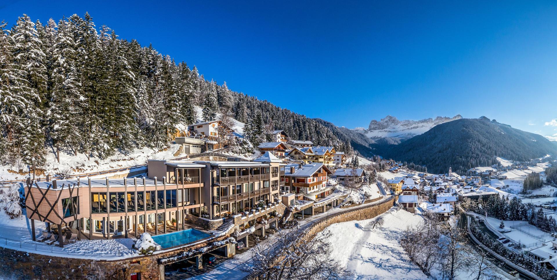 Am ruhigen Ortsrand von Welschnofen im idyllischen Eggental in Südtirol, empfängt das Charmehotel Friedrich mit herzlicher Gastfreundschaft, stilvollem Ambiente und Panoramablick auf die majestätischen Gipfel der Südtiroler Berge. Hier verschmelzen Natur, Genuss und Erholung auf wunderbare Weise: Natürliche Materialien und liebevolle Details schaffen ein Zuhause‑Gefühl mit alpinem Flair. Die Zimmer und Suiten bieten großzügigen Komfort mit atemberaubender Aussicht. Regionale Zutaten, Südtiroler Spezialitäten und ausgewählte Weine bilden die Grundlage für Genussmomente, die den Aufenthalt abrunden. Durchatmen im Wellnessbereich: beheizter Infinity‑Outdoor‑Pool, Panorama‑Sauna, Dampfbad, Infrarot‑Kabine und gemütliche Ruhezonen laden zum Abschalten ein. Egal ob Sommer oder Winter: Vom Hotel aus direkt in den Naturraum starten – sei es Wandern und Mountainbiken oder Skifahren und Langlauf.