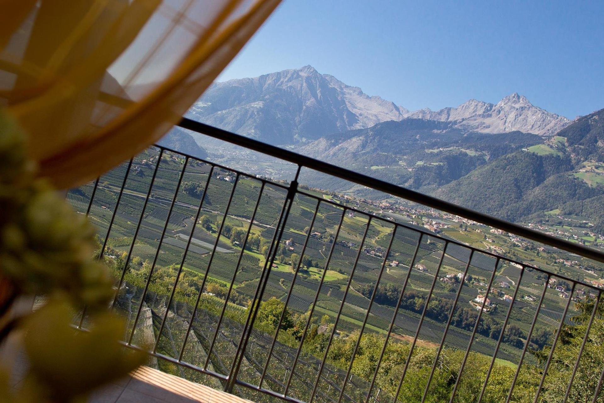 Neues, geschmacksvolles und elegant eingerichtetes Doppelzimmer (ca. 31 M²) mit Balkon sorgt für eine gemütliche und behagliche Atmosphäre. Blick auf das Meranerland und das Etschtal. Alle Zimmer mit Balkon, Sofa u./o. Sitzecke, Sat-TV mit Radio, Telefon, Safe, Minibar, Klimaanlage und WLAN. Badezimmer mit Dusche, WC, Bidet und Fön.