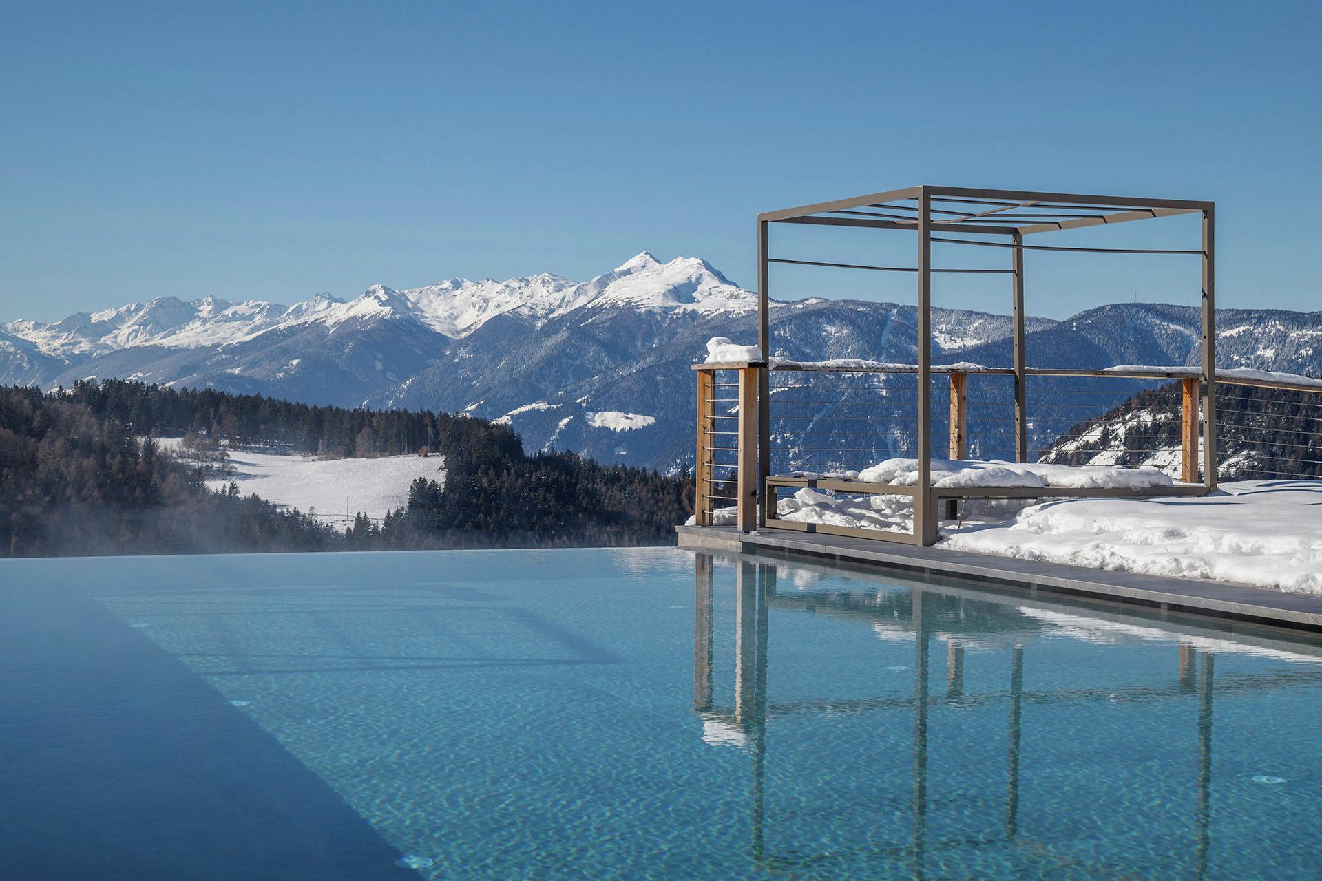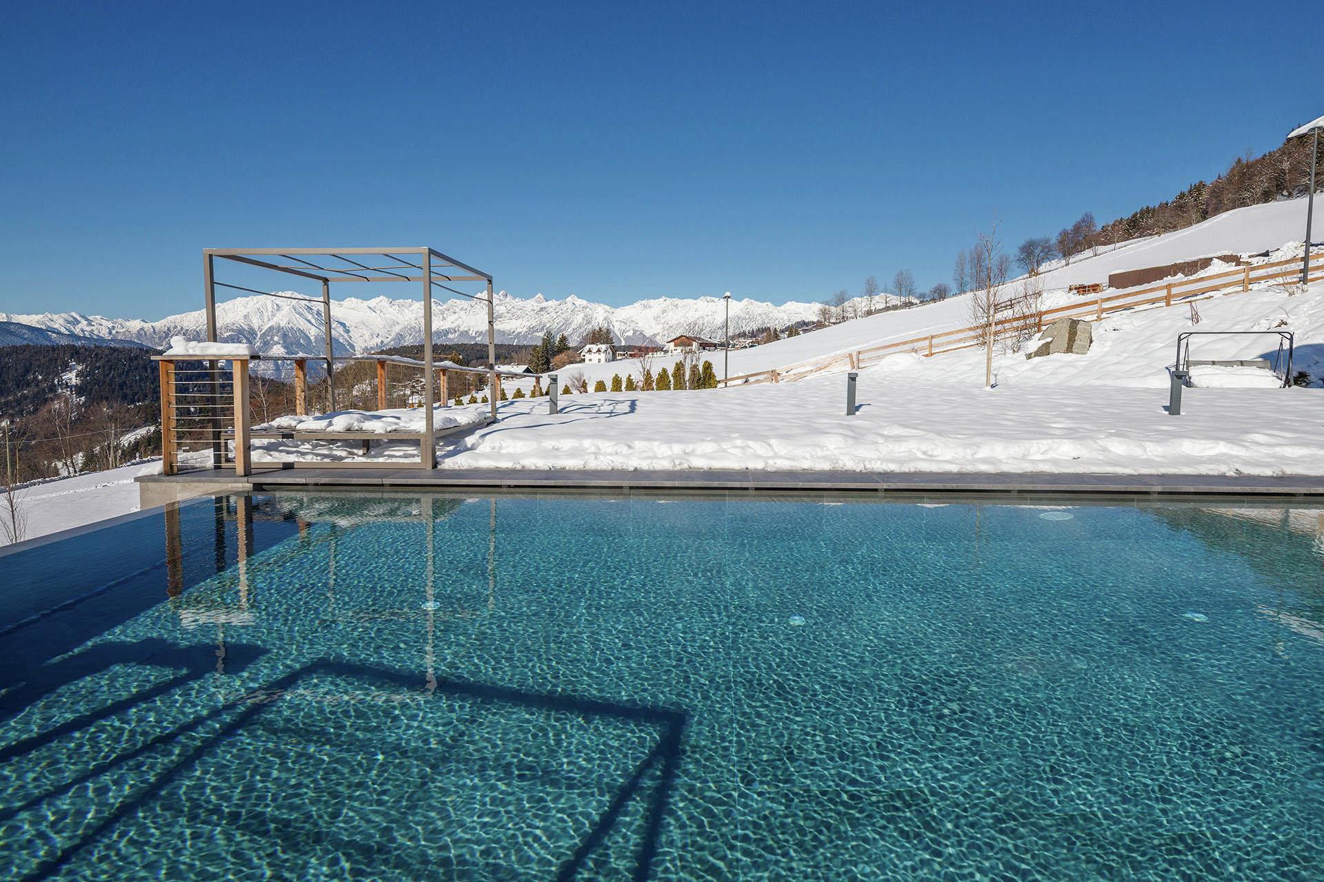- Infinity-Indoor- und Outdoorpool (ganzjährig beheizt auf 32 °C) mit traumhafter Aussicht