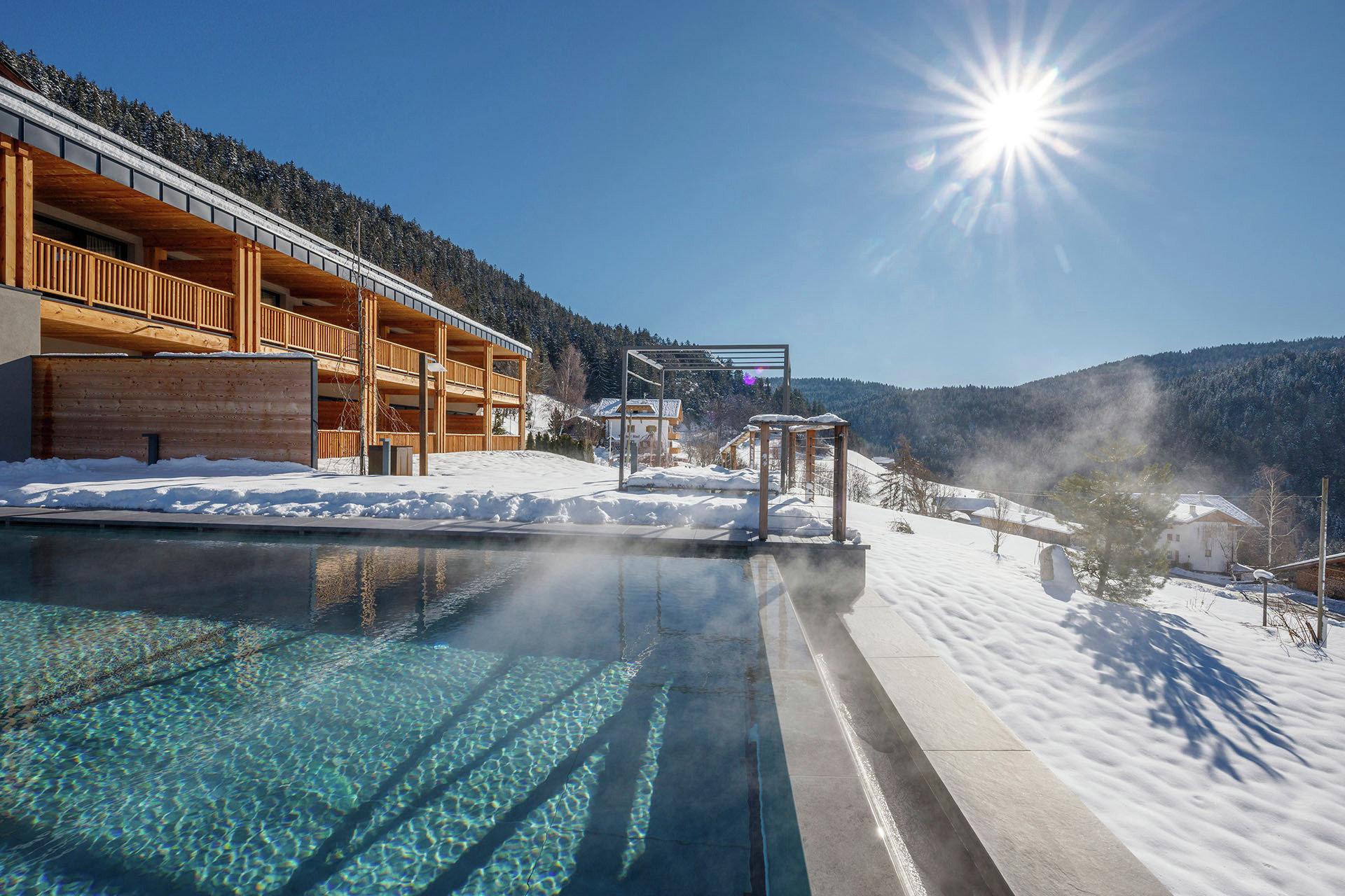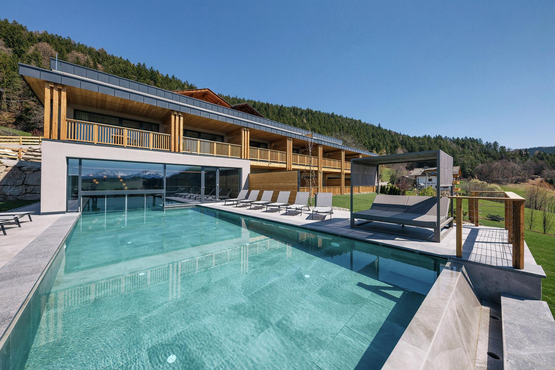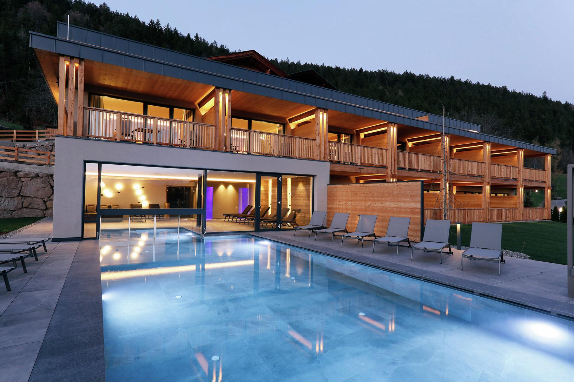 Im Hotel Avelina in Hafling erwarten Sie viele Highlights. Wenn Sie eine Auszeit fern vom Alltagsstress suchen, dann sind Sie hier genau richtig. Das Hotel befindet sich in traumhafter Panoramalage oberhalb der Kurstadt Meran, inmitten von Wiesen und Wäldern. Das Haus bietet die perfekte Ausgangslage für all Ihre Unternehmungen. Meran mit seinen zahlreichen Sehenswürdigkeiten liegt nur 10 Kilometer entfernt, zahlreiche Wander- und Biketouren beginnen direkt vor der Haustür und auch das Wander- und Skigebiet Meran 2000 befindet sich in unmittelbarer Nähe. Nach einem erlebnisreichen Tag erwarten Sie im Wellnessbereich eine finnische Panorama-Sauna, ein beheizter Infinity-Indoor- und Outdoorpool, ein Panorama-Ruheraum, ein Fitnessraum, Massageräume und noch viel mehr. Erleben Sie im Hotel Avelina einen unbeschwerten und erholsamen Urlaub inmitten der Natur bei charmanten Gastgebern und köstlichem Essen.