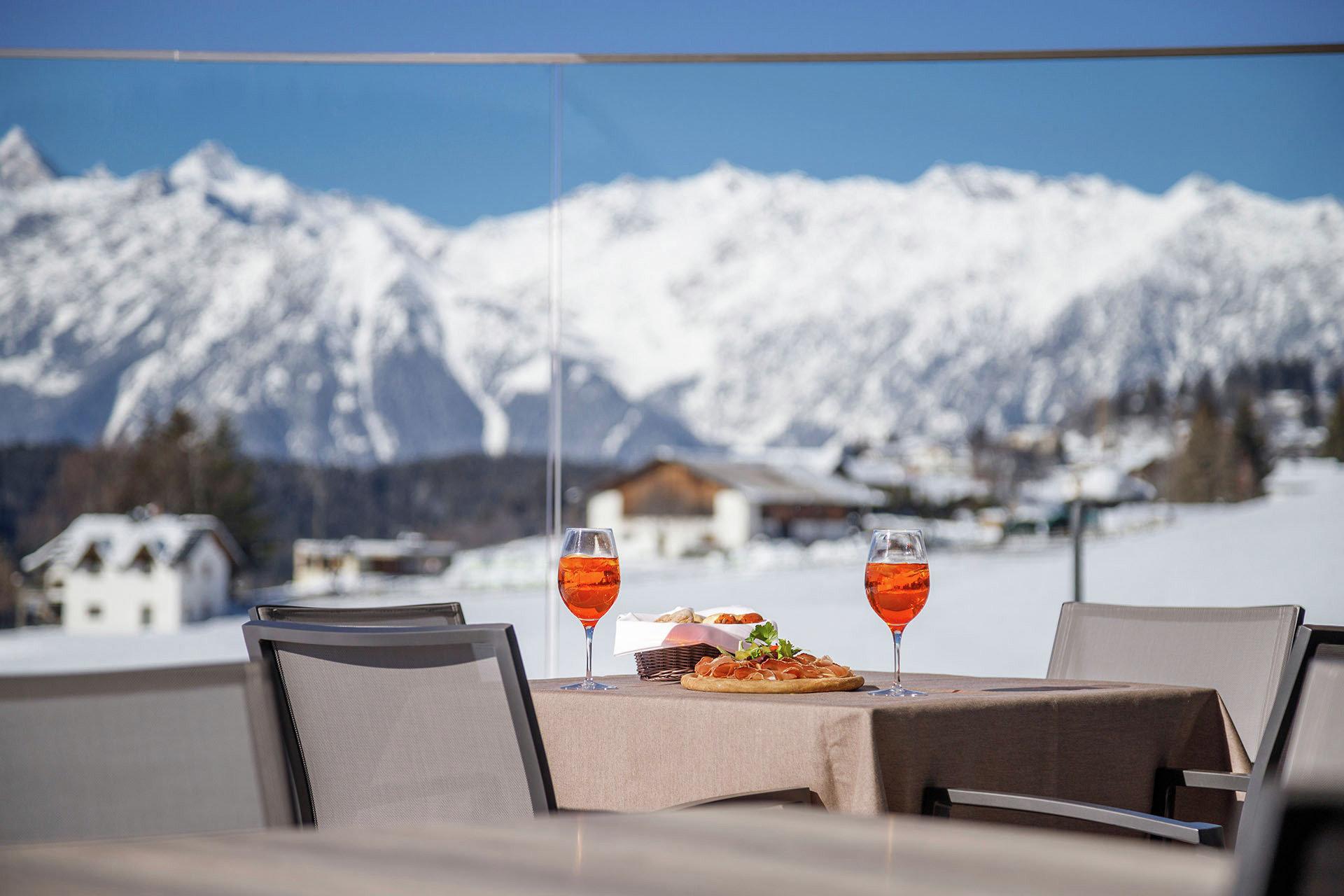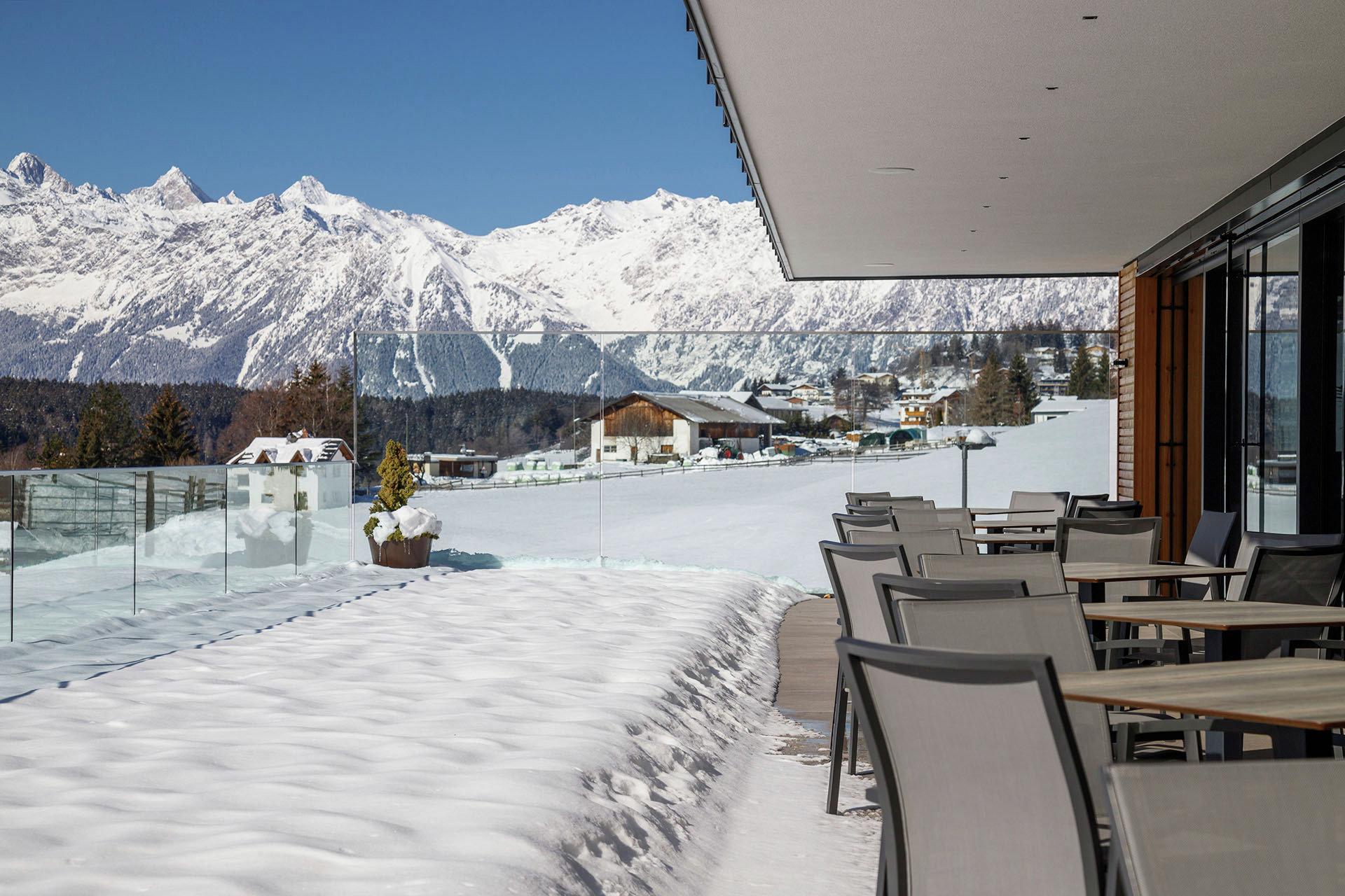 Frische Bergluft einatmen und die herrliche Aussichten im Winter genießen.