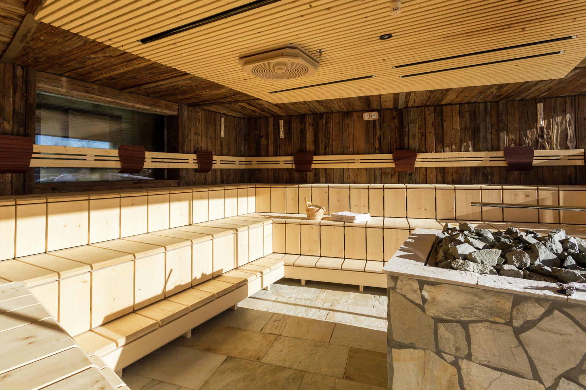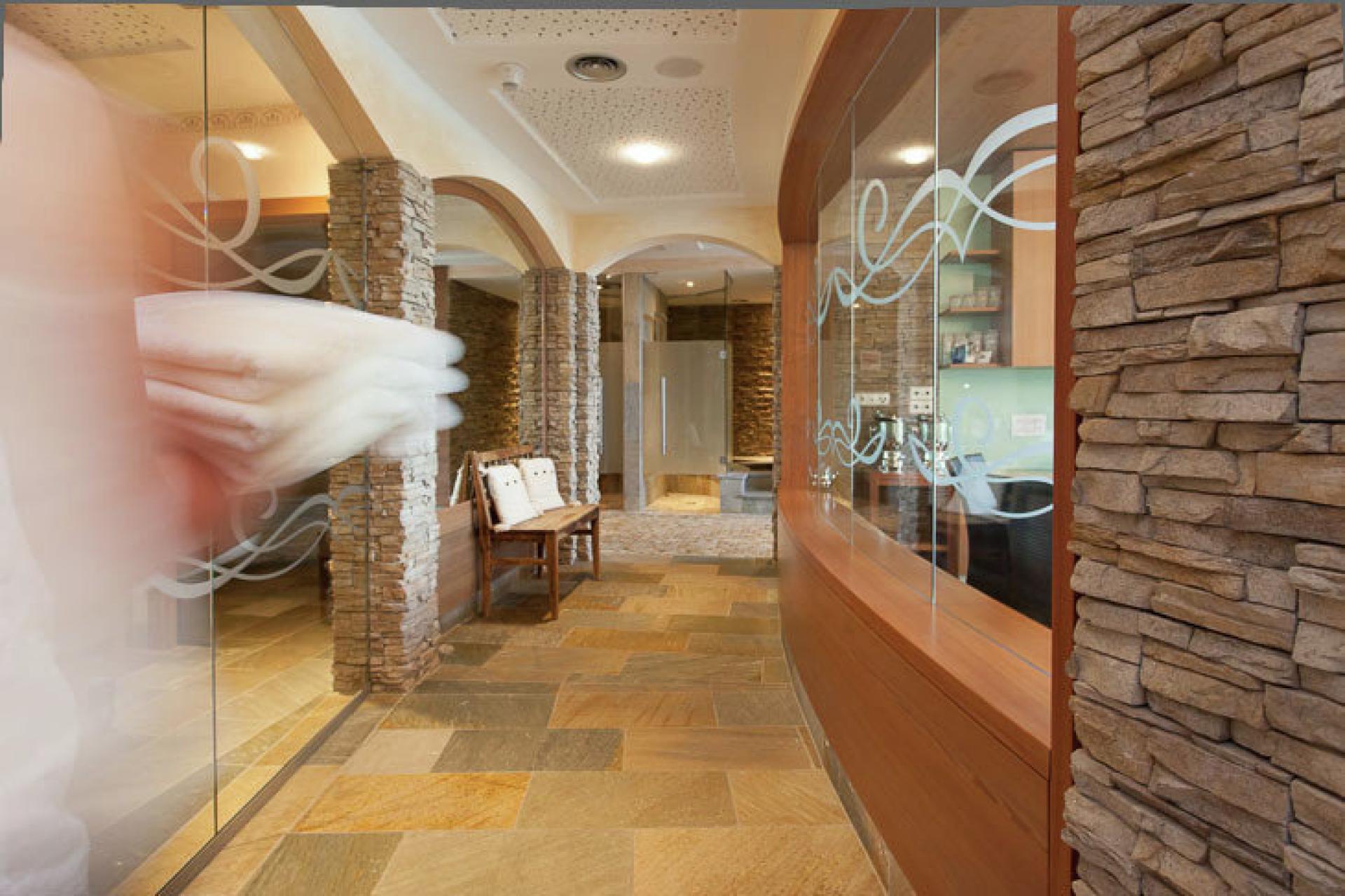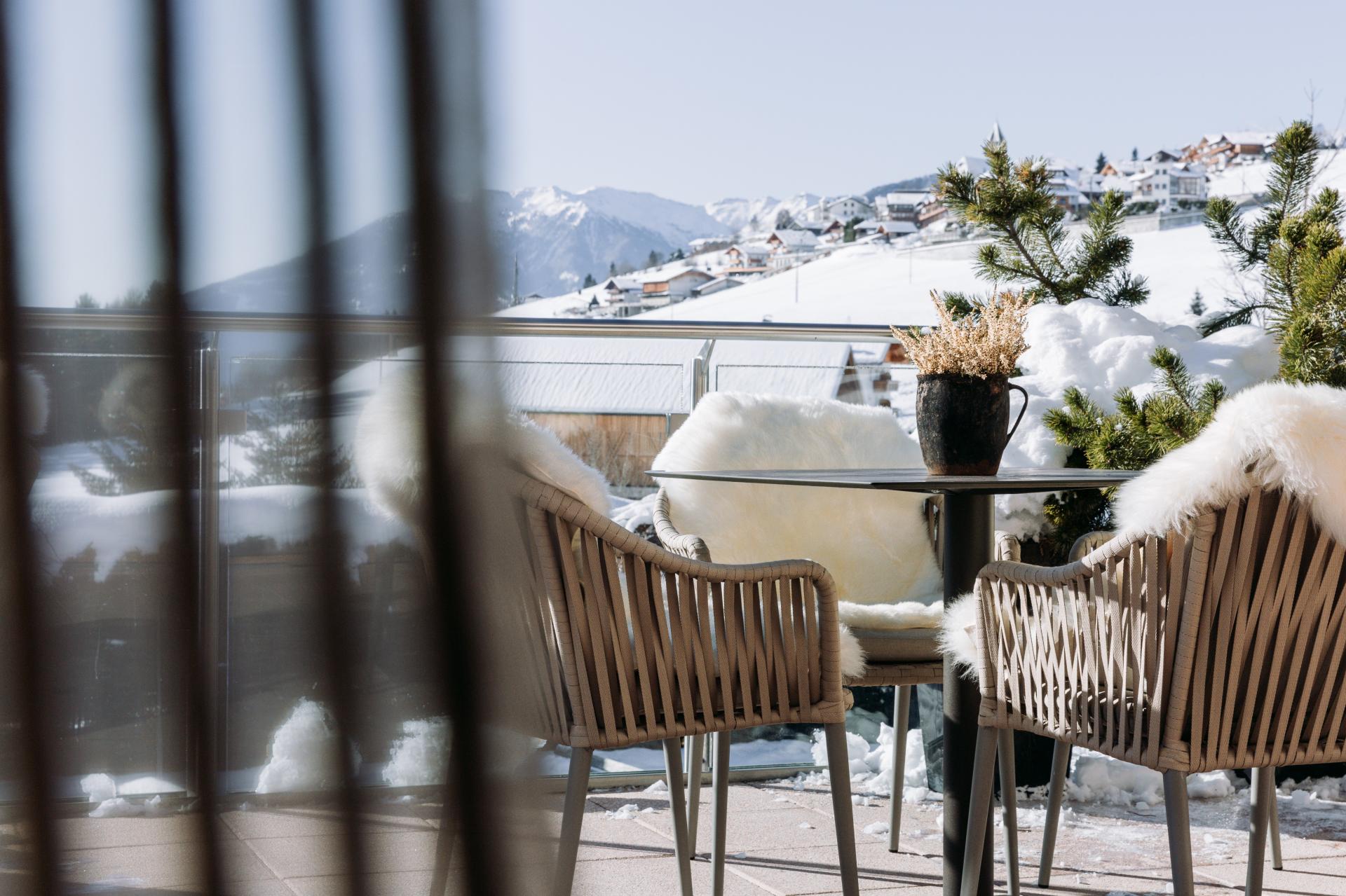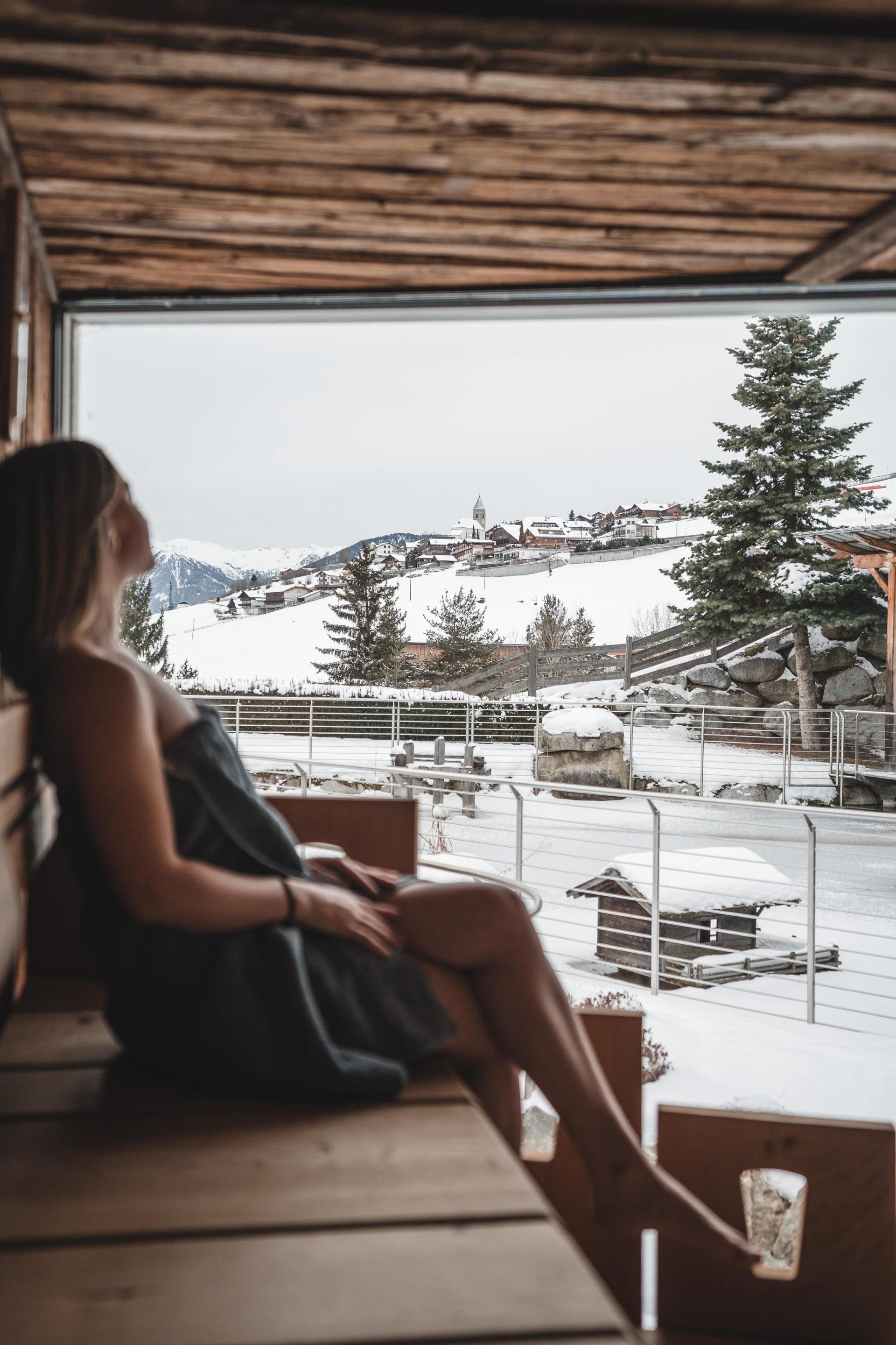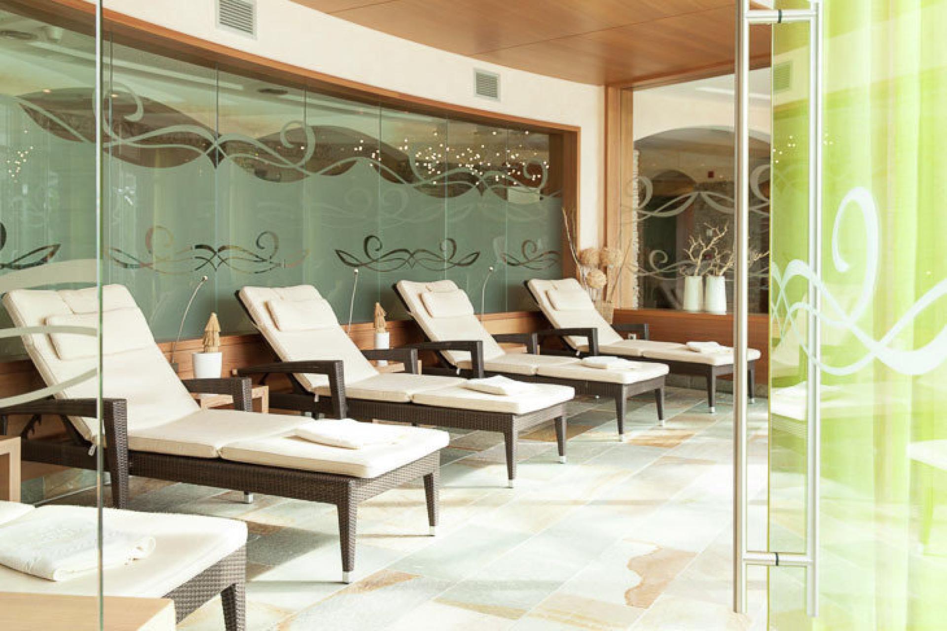 - Unser Wellnessbereich mit traumhaftem Ausblick auf die Dolomiten