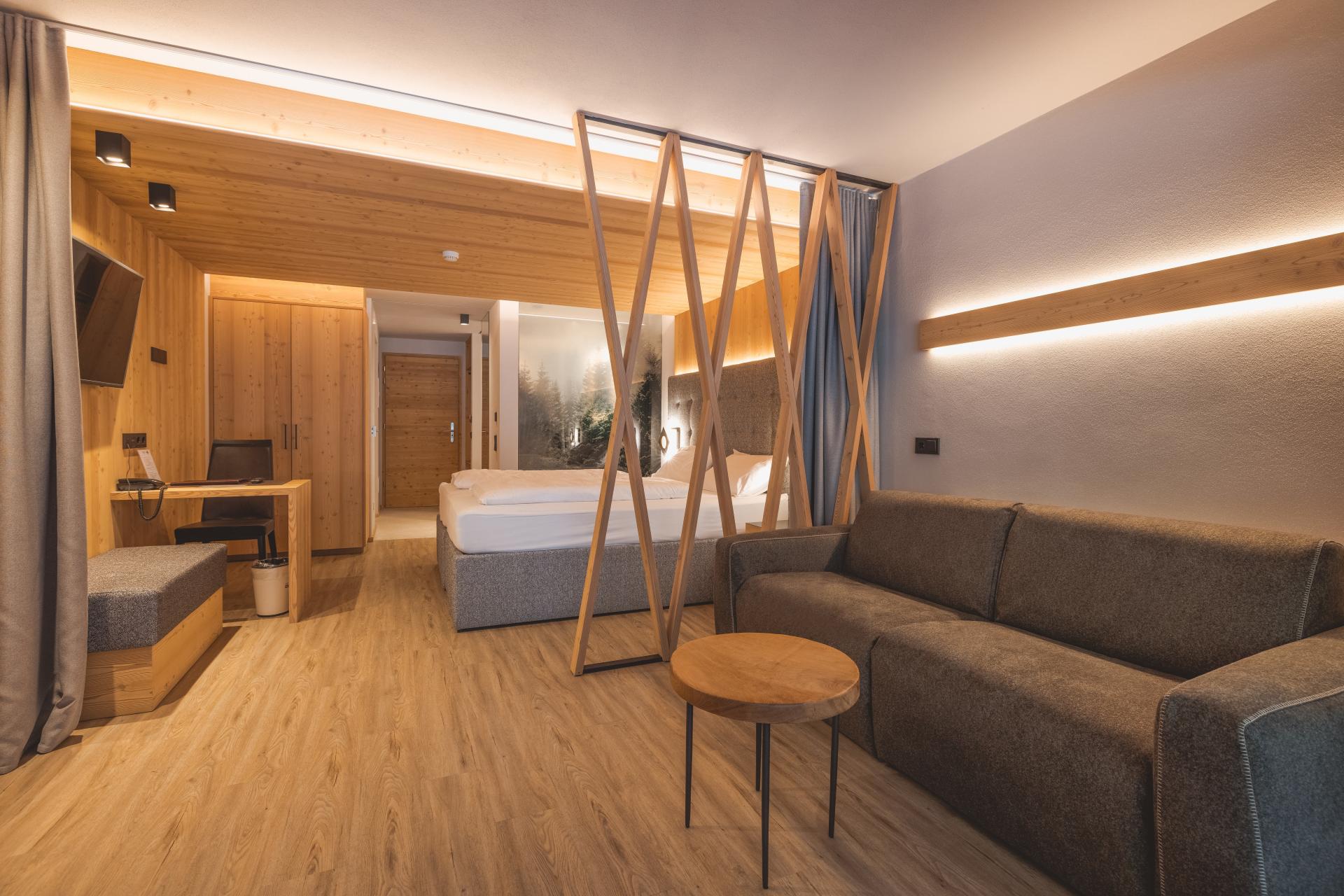 Unsere neuen Doppelzimmer Superior haben einen modernen alpinen Stil und alle Möbel sind aus natürlichen Lärchenholz aus unserer Gegend. Diese Zimmer befinden sich in ruhiger und stiller Lage und sind ideal zum Entspannen und neue Kraft zu tanken.