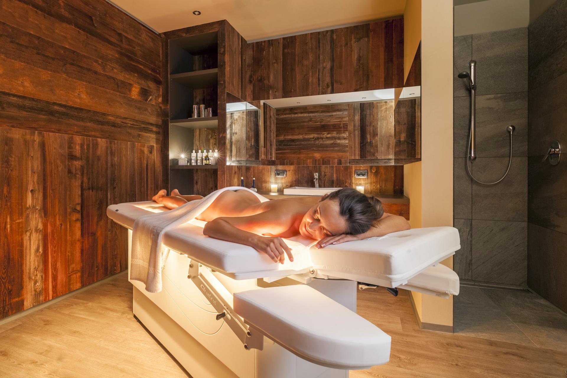 Diese exklusive und geräumige Design-Suite ist 60 m² groß und verfügt über eine private Sauna mit herrlichem Blick auf die Dolomiten.