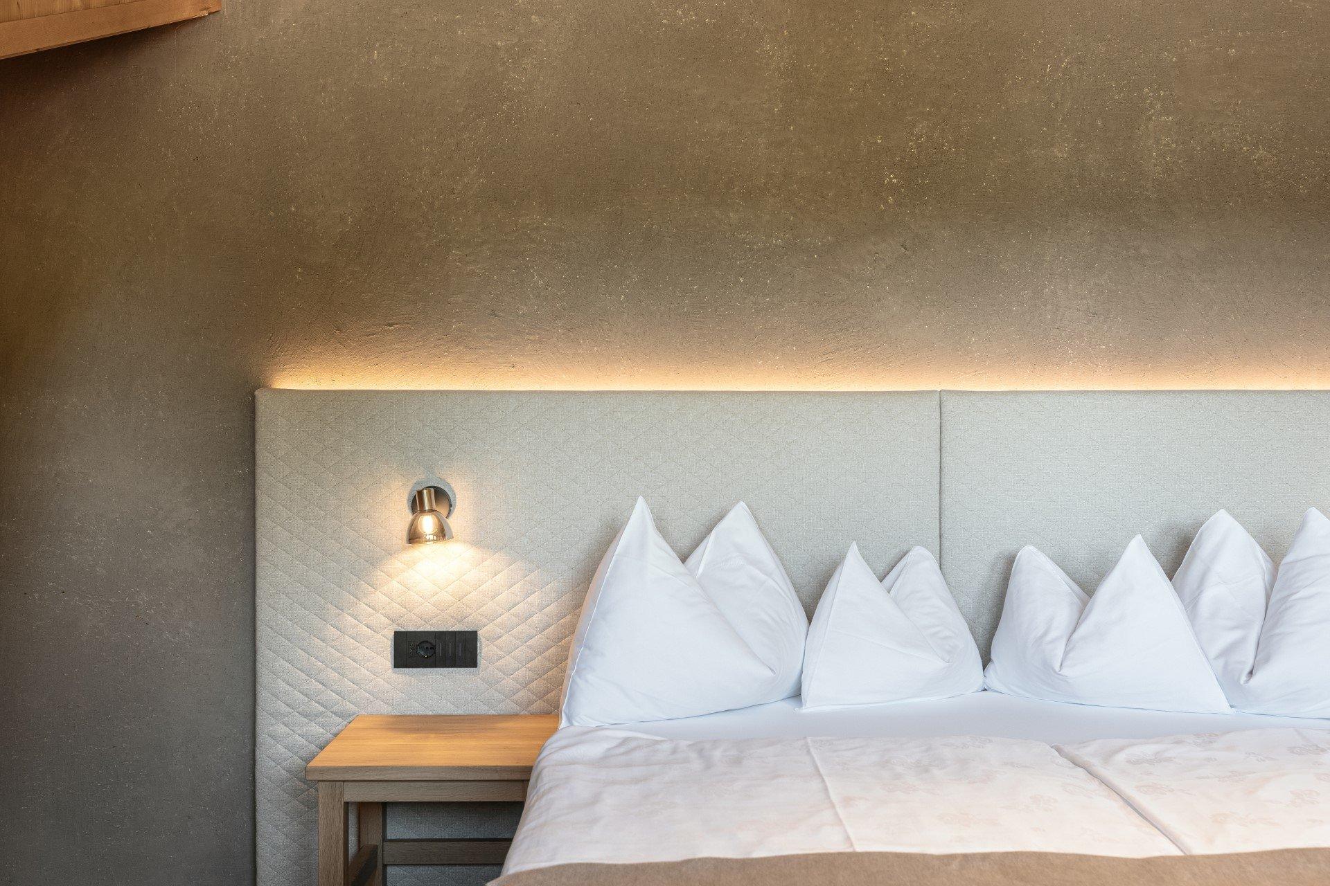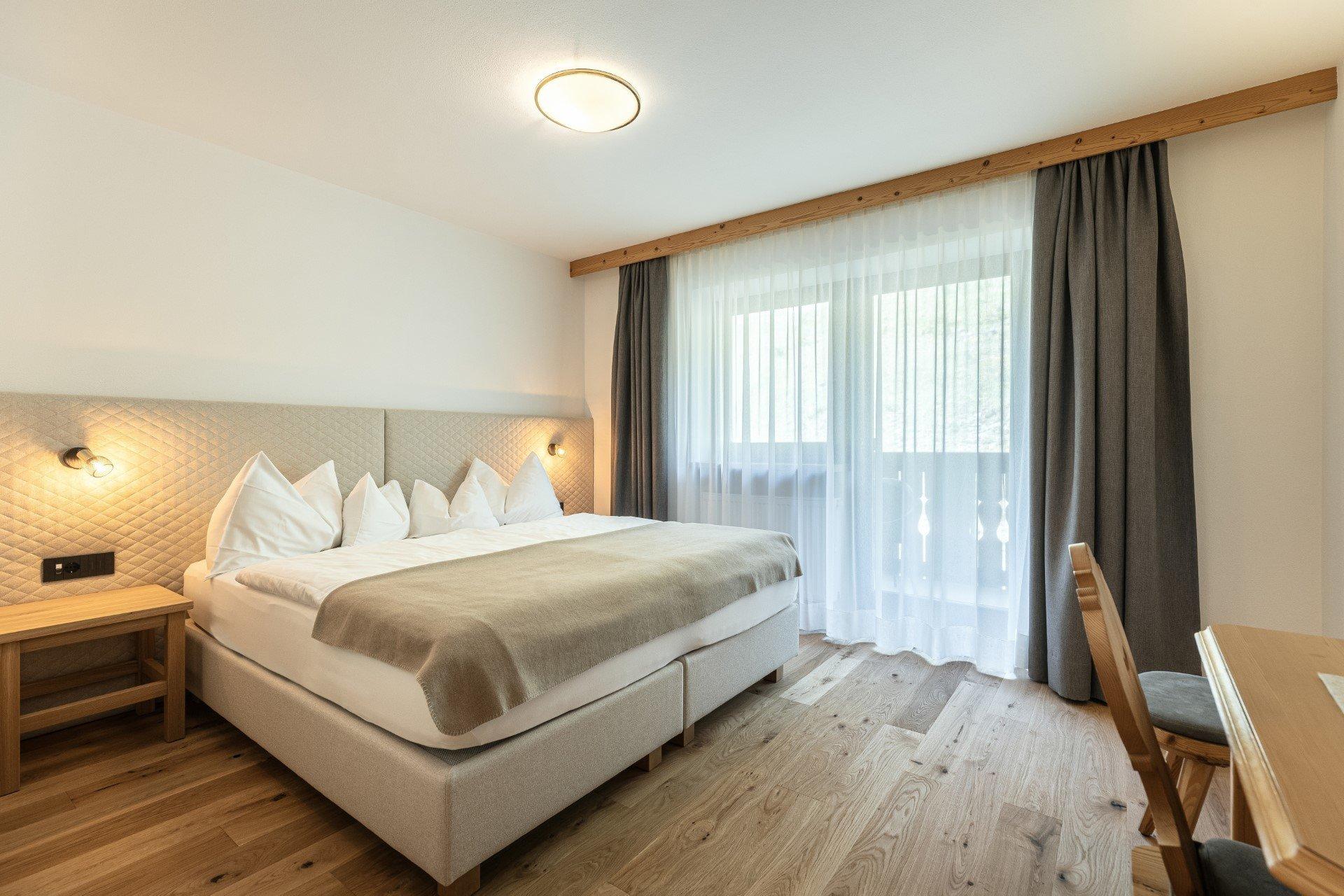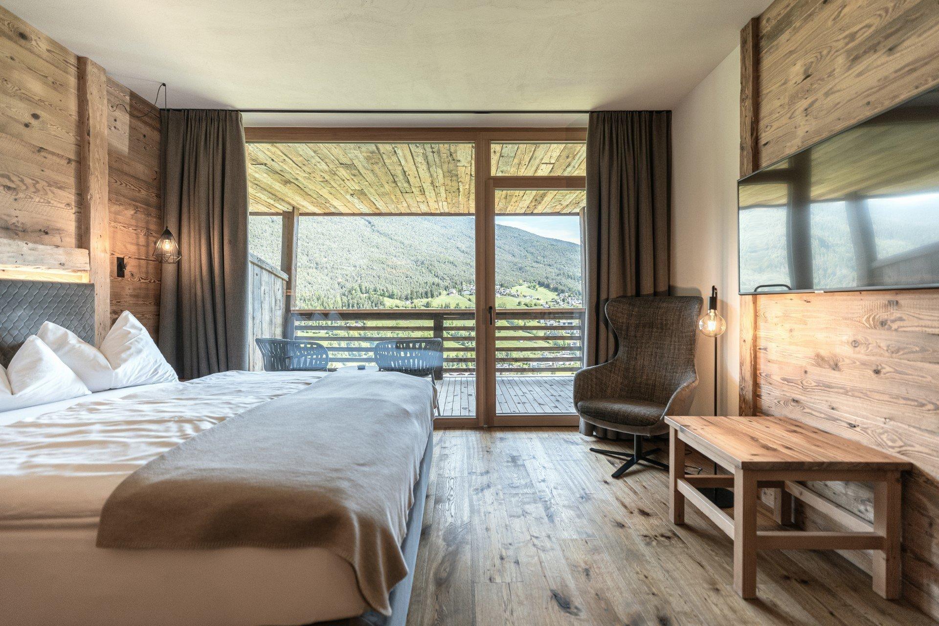 Die neuen Junior Suiten (für 4 bis 5 Personen) verfügen über Holzboden und einen Balkon oder Terrasse mit Wald- oder Seitenblick, auf dem Sie die frische Bergluft genießen und Ihre Seele baumeln lassen können. Mehrere Lichtquellen und die harmonische Verbindung von klaren Linien mit eleganten Holzmöbeln und warmen Farbtönen sorgen für eine Wohlfühlatmosphäre, in der Sie den Alltag ganz entspannt hinter sich lassen können.