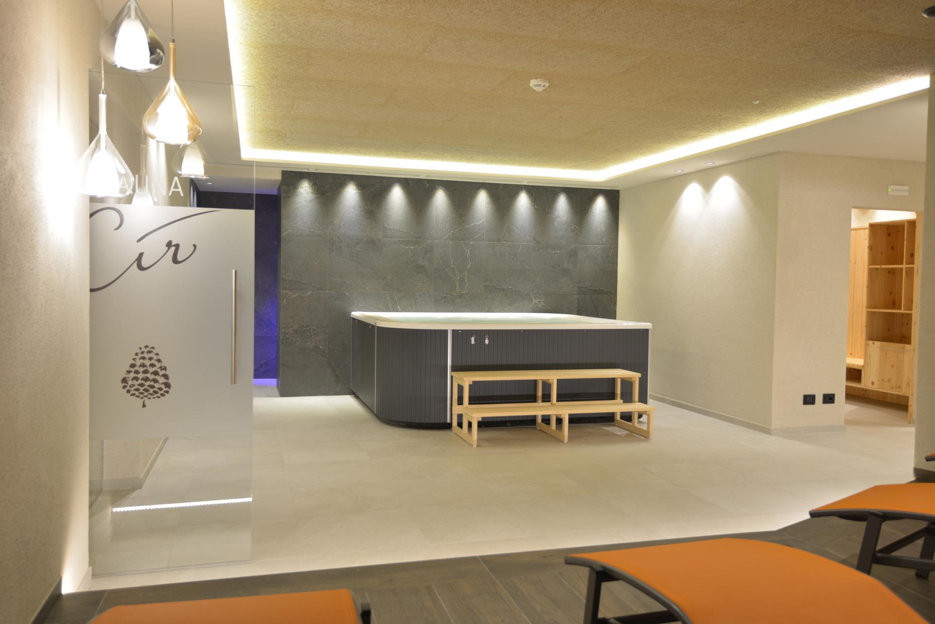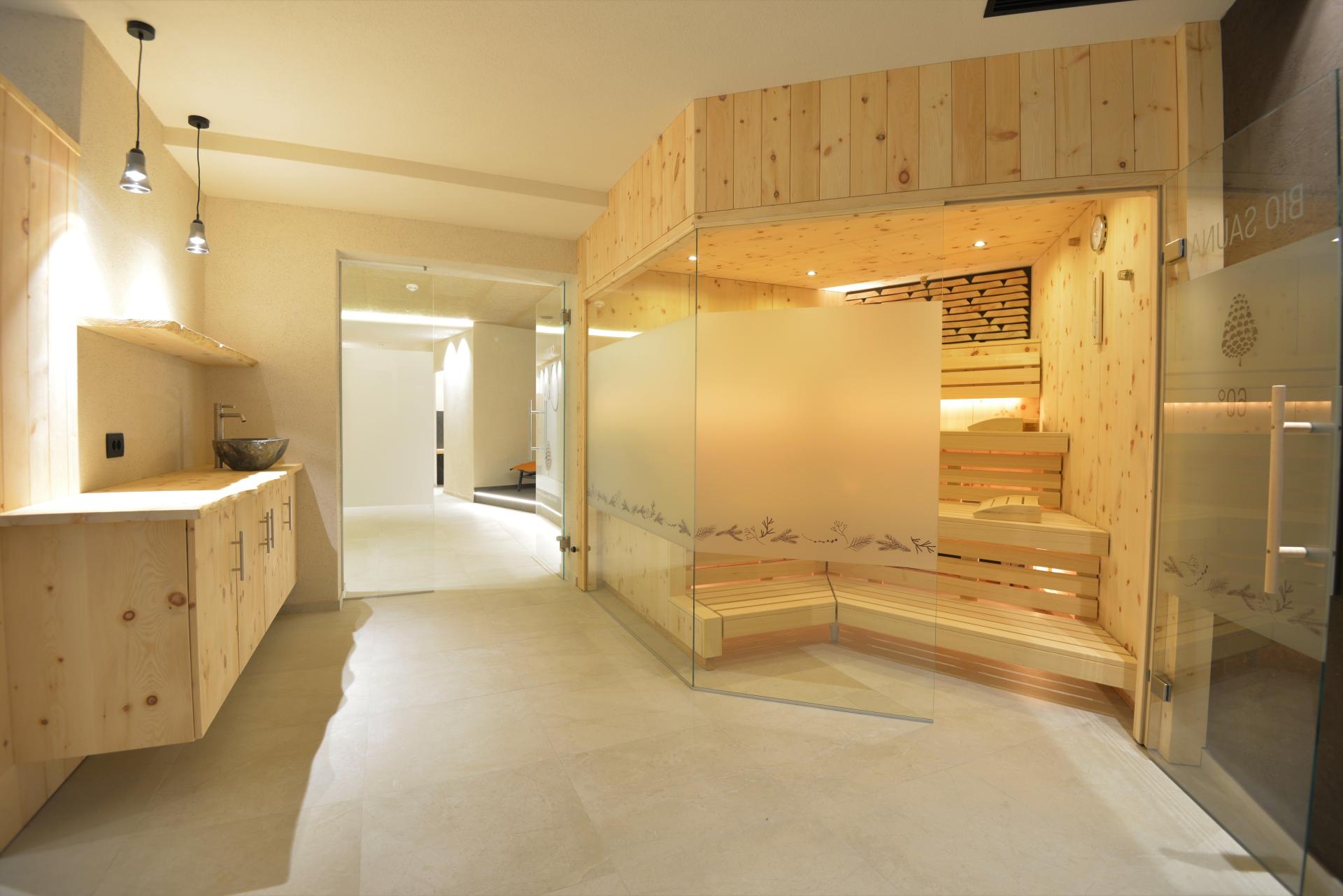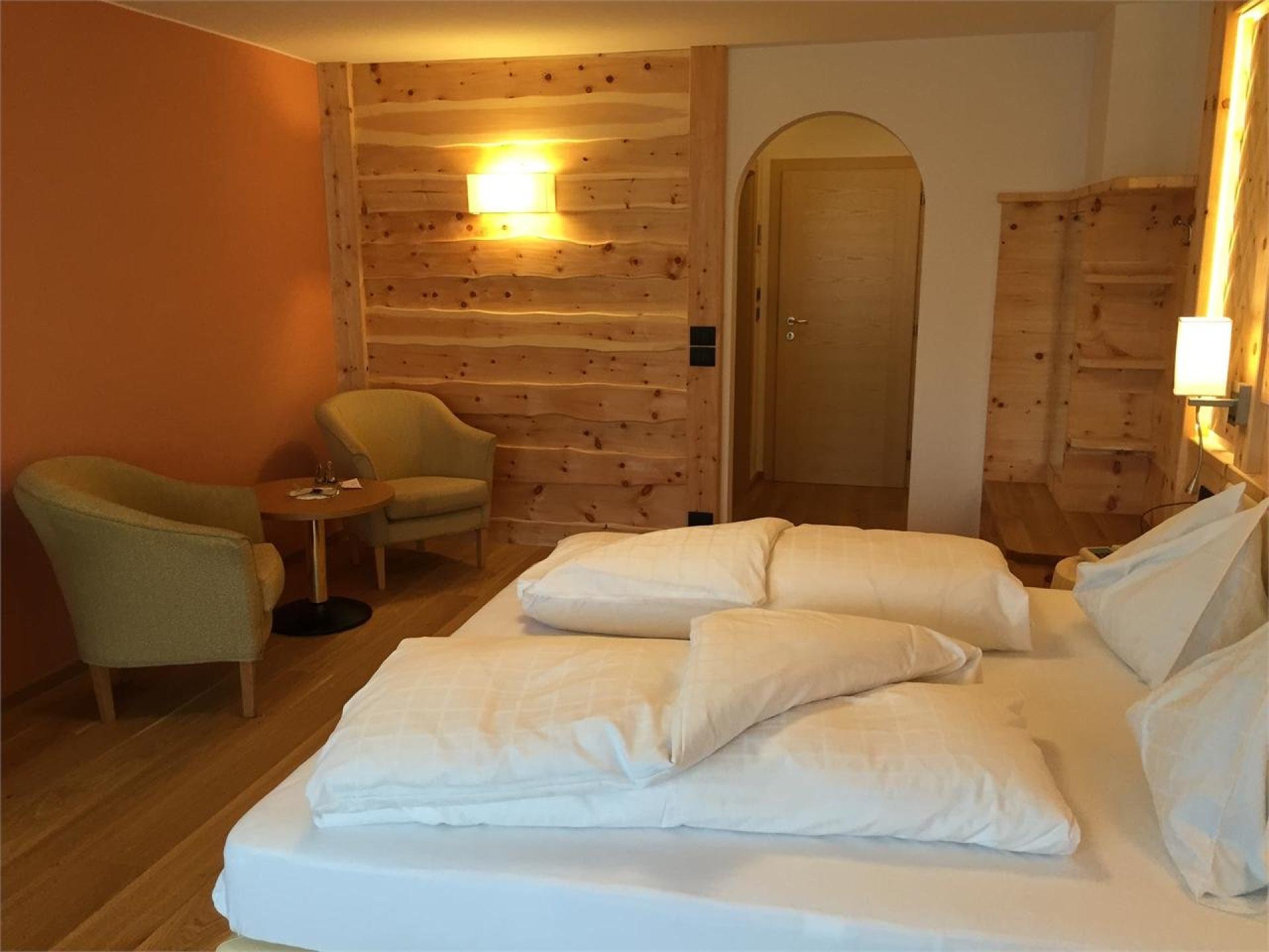 Großzügiges Doppelzimmer mit Einrichtung im Zirbelholz, Dusche bzw. Bad/WC, Fön, Flachbildfernseher, Sitzecke, Holzboden, Balkon und WLAN