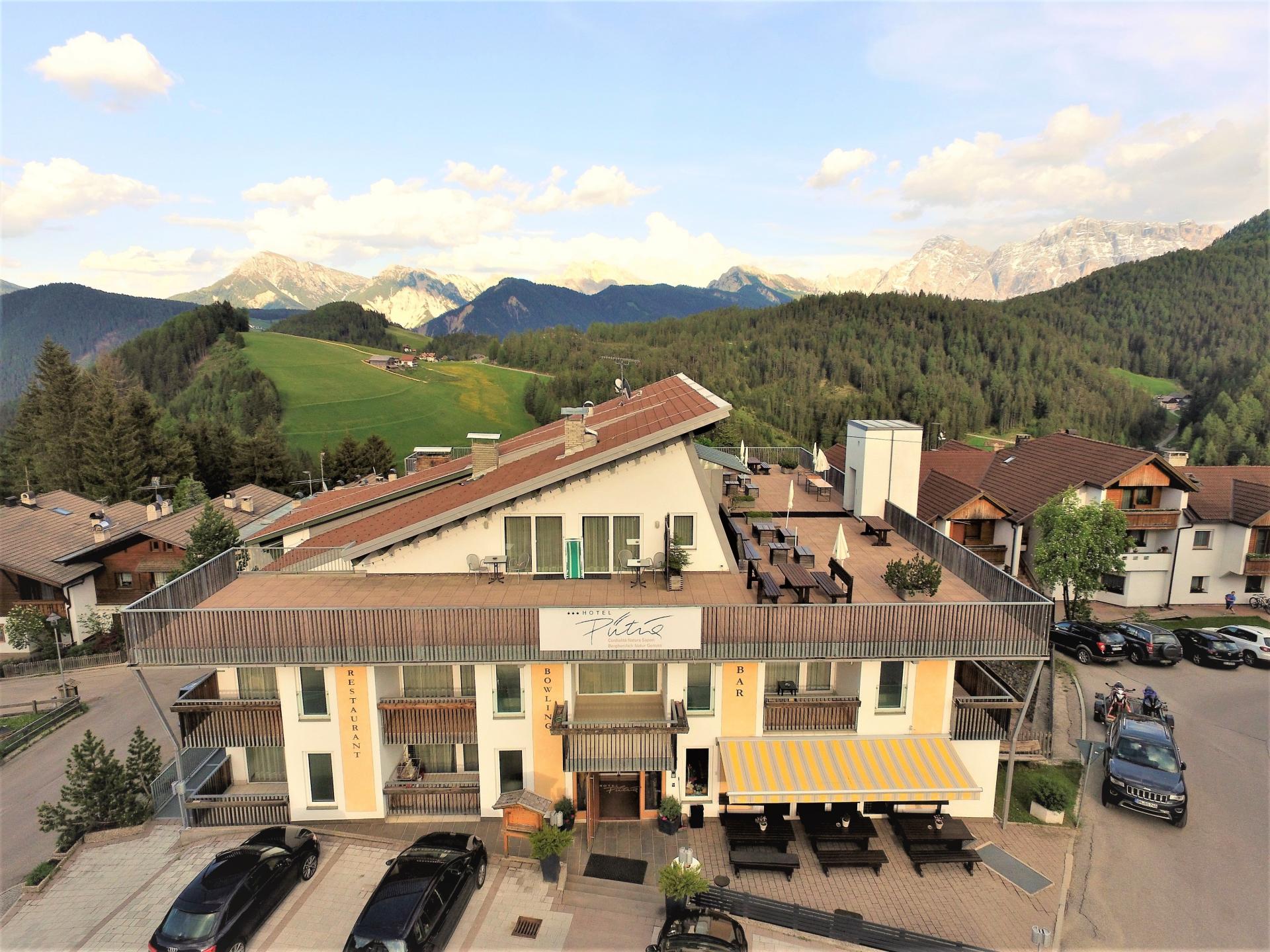 Das familiengeführte 3-Sterne-Hotel Pütia befindet sich im idyllischen ladinischen Ort Antermoia und begeistert mit einer einmaligen Aussicht. Direkt vor der Haustür kann man zu unterschiedlichsten Aktivitäten in den zwei Naturparks Puez-Geisler und Fanes-Sennes-Prags aufbrechen. Aber auch Winterliebhaber kommen hier voll auf ihre Kosten. Anfänger können direkt im Ort beim Schlepplift mit Skischule ihre ersten Versuche auf Brettern machen. Geübtere Fahrer gelangen mit dem kostenlosen Skibus zu Südtirols Skigebiet Nr. 1, dem Kronplatz. Nach einem aufregenden Tag in der Südtiroler Natur kann man sich in der Wellnessoase mit Saunas und Whirlpool entspannen und auf der Panorama-Dachterrasse malerische Momente verbringen. Zu einem gelungenen Urlaub gehört auch der kulinarische Genuss. Im Panorama-Speisesaal genießt man neben der Südtiroler Küche auch traditionelle ladinische Gerichte sowie italienische Spezialitäten. In den gemütlichen Zimmern kann man sich entspannen, um am nächsten Tag voller Energie die Dolomiten zu erkunden.