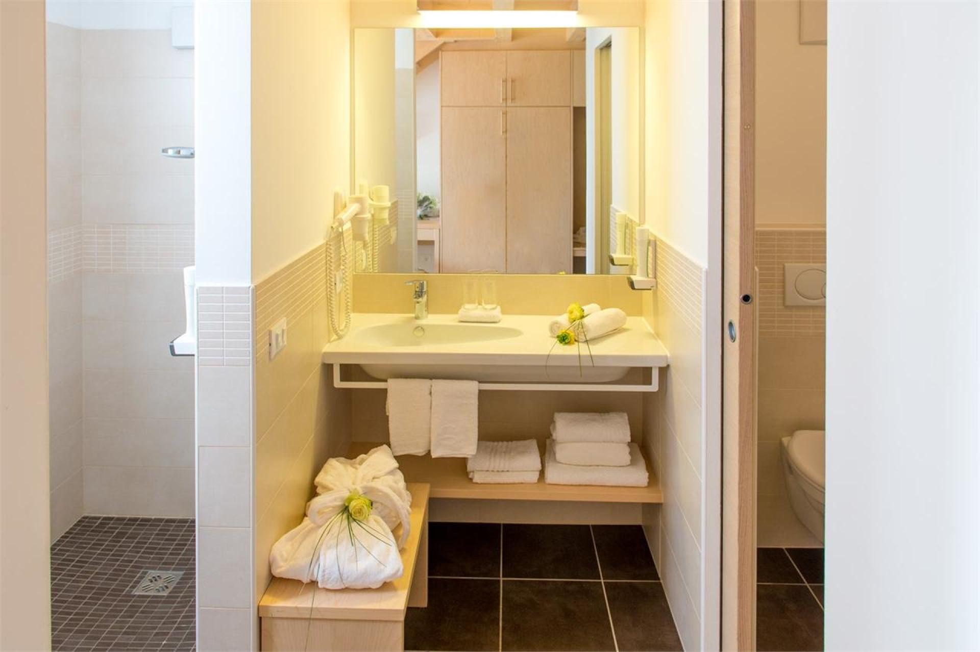 Die neuen Wohlfühlzimmer mit Holzfußboden, großer Fensterfläche und modernem Bad. Gemütlicher Balkon, Wellnesstasche mit Saunatücher und Bademantel