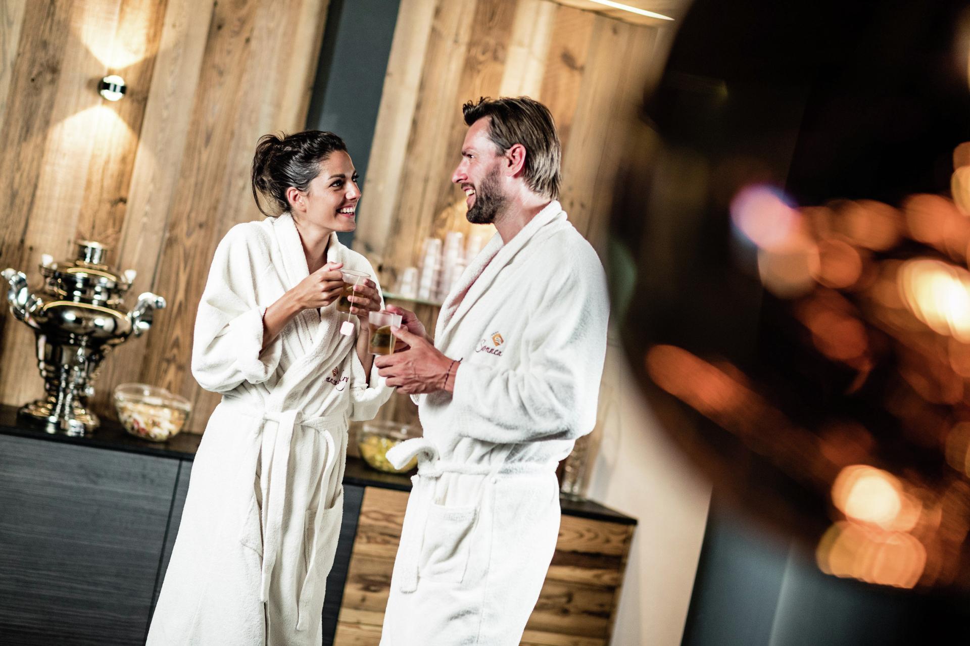 In Ihrer Suite finden Sie einen privaten Whirlpool, und eine Sauna – die perfekte Kombination für Entspannung und Wohlbefinden.