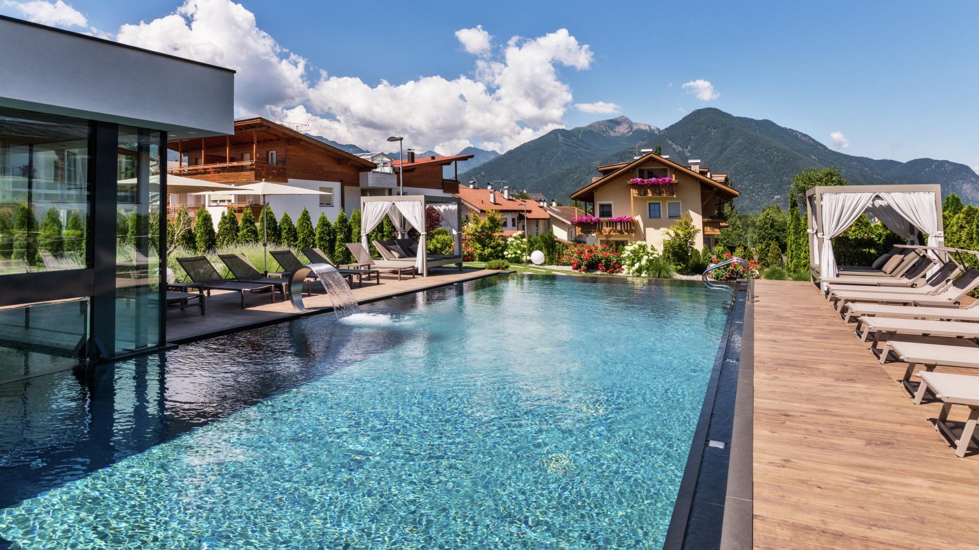 Zwischen blühenden Apfelbäumen und malerischen Weinreben zaubert das Hotel Sun auf dem sonnigen Hochplateau von Natz-Schabs Naturliebhabern ein Lächeln ins Gesicht. Angefangen beim reichhaltigen Frühstücksbuffet über das einmalige Fünf-Gang-Wahlmenü am Abend bis hin zu den Zimmern und Suiten mit fantastischem Panoramablick – diese traumhafte Kombination bringt Ihre Augen mit Sicherheit zum Leuchten. Nicht zu vergessen: das sonnige Gemüt der Gastgeber, die mit großer Leidenschaft und unglaublicher Lebensfreude Urlaubsträume erfüllen. Lassen Sie sich fallen, genießen Sie wohltuende Ruhe und tanken Sie Vitamin D. Dafür gibt es wohl keinen besseren Ort als den ganzjährig beheizten Infinity-Pool und den idyllischen Naturbadeteich im Grünen. Die verschiedenen Saunas und vitalisierenden Massagen tragen mit Sicherheit zu Ihrem Wohlgefühl bei. Einfach abschalten und sich von Kopf bis Fuß verwöhnen lassen. Einen sonnigen Abschluss für Ihren Urlaub verspricht die Südtiroler Bergwelt. Himmlische Wanderungen und Bike-Ausflüge bringen Sie garantiert zum Strahlen.