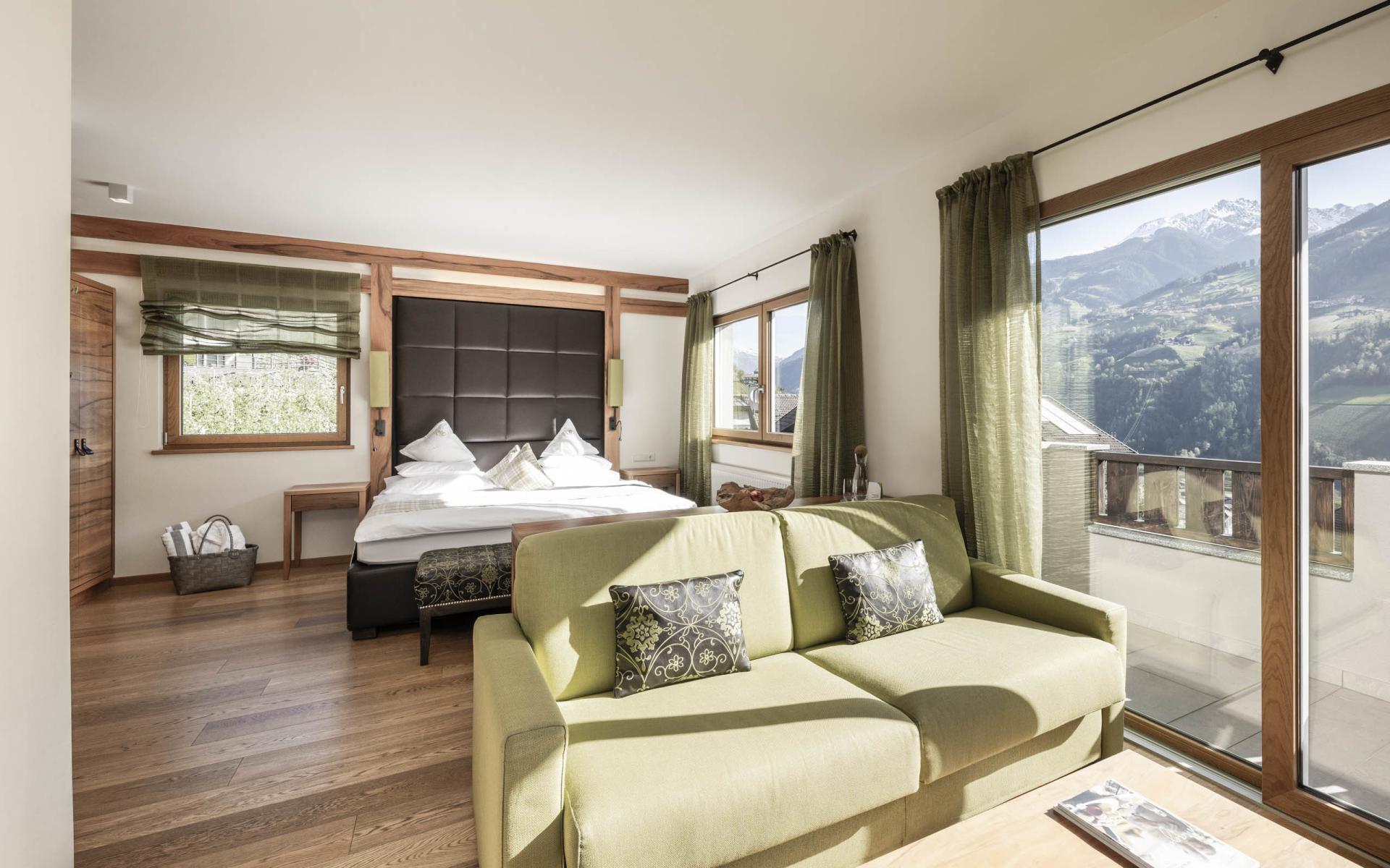 In Riffian bei Meran erwartet Sie ein einzigartiges Wanderhotel: In sonnenverwöhnter Panoramalage bietet der Zirmerhof Hotel & Residence ein vielseitiges Aktivprogramm mit geprüften Wanderführern und - seit April 2025 - neue Wellnesshighlights für einen unvergesslichen Aufenthalt! Das Wanderhotel Zirmerhof ist der ideale Ausgangspunkt für Wandertouren im Herzen der Südtiroler Bergwelt. Die Kombination aus wunderschöner Berglandschaft und milden Temperaturen sorgt für eine lange Wandersaison im Meraner Land. Nach einem erlebnisreichen Urlaubstag entspannen Sie im beheizten Infinity-Pool, dem großzügigen Yoga- und Bewegungsraum, dem Ruheraum mit Blick auf den neu gestalteten Garten und in der Eventsauna. Sie haben die Wahl zwischen einem der liebevoll eingerichteten Zimmer oder einer komfortablen Ferienwohnung. Das Küchenteam verwöhnt Sie mit kulinarischen Köstlichkeiten aus Südtiroler Qualitätsprodukten. Abgerundet wird das Gaumenerlebnis mit erlesenen Weinen aus Südtirol.
