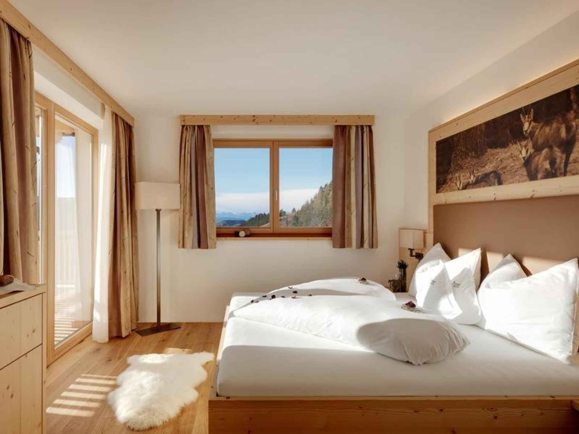 Elegante, großzügig eingerichtete Mansardensuite (ca. 62m²) mit eigener Infrarotkabine. In natürlichen Hölzern liebevoll gestaltet, versprüht sie Luxus und Gemütlichkeit gleichermaßen. Die Suite verfügt über getrennte Wohn- und Schlafbereiche, eigenen Verandabalkon, begehbaren Kleiderschrank, Sitzecke und Liegecouch, Teppichboden, Tresor, Flachbild-TV und LAN-Anschluss, offenes Badezimmer mit Dusche und Badewanne, Bidet und separates WC. (2-4 Pax)