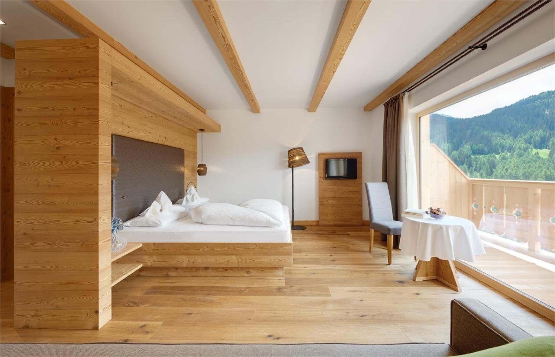 Traumhaft schöne Suite (ca. 38 m²) mit herrlicher, begrünter Südterrasse bzw. Balkon, eingerichtet mit einheimischen Hölzern und naturnahen Stoffen. Die Juniorsuiten sind barrierefrei, verfügen über Holzfußboden oder Teppichfußboden, Terrasse oder Balkon, Sitzecke und Liegecouch, Tresor, Flachbild-TV und LAN- Anschluss, elegantes großes Badezimmer mit Dusche, Bidet und separatem WC. (2-4 Pax)