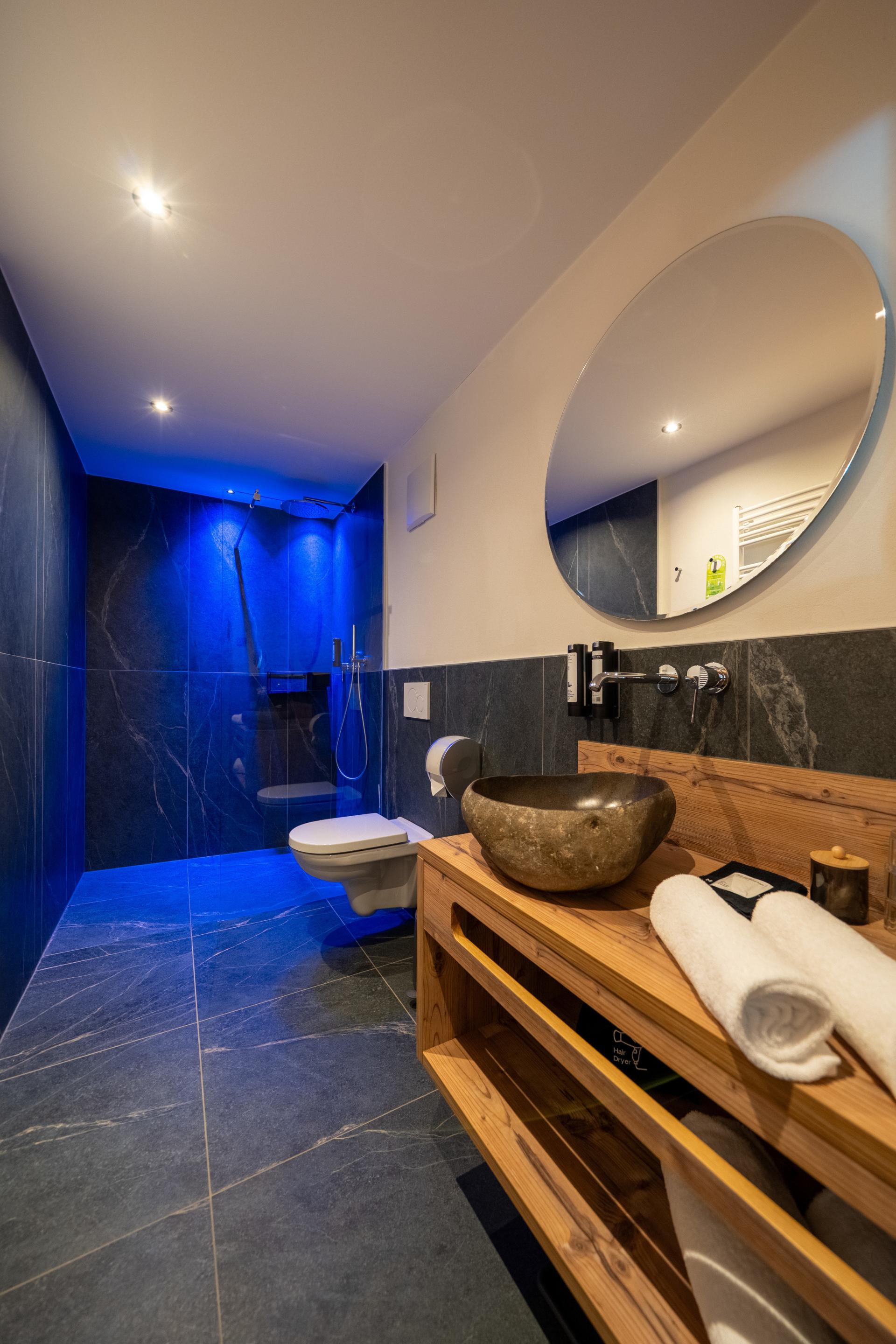 Badezimmer mit Dusche/WC, Bademänteln und inkludierter Wellness-Tasche