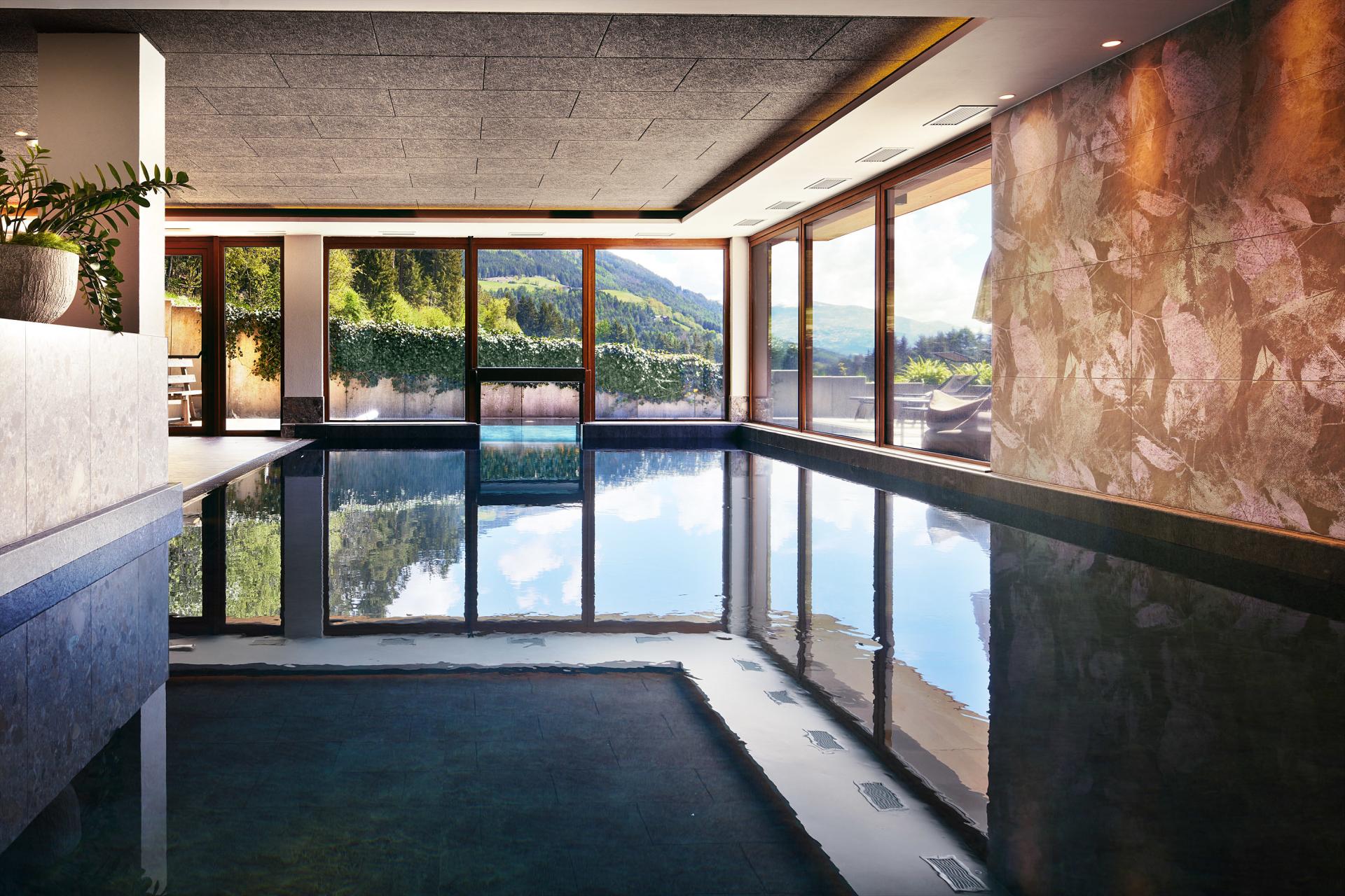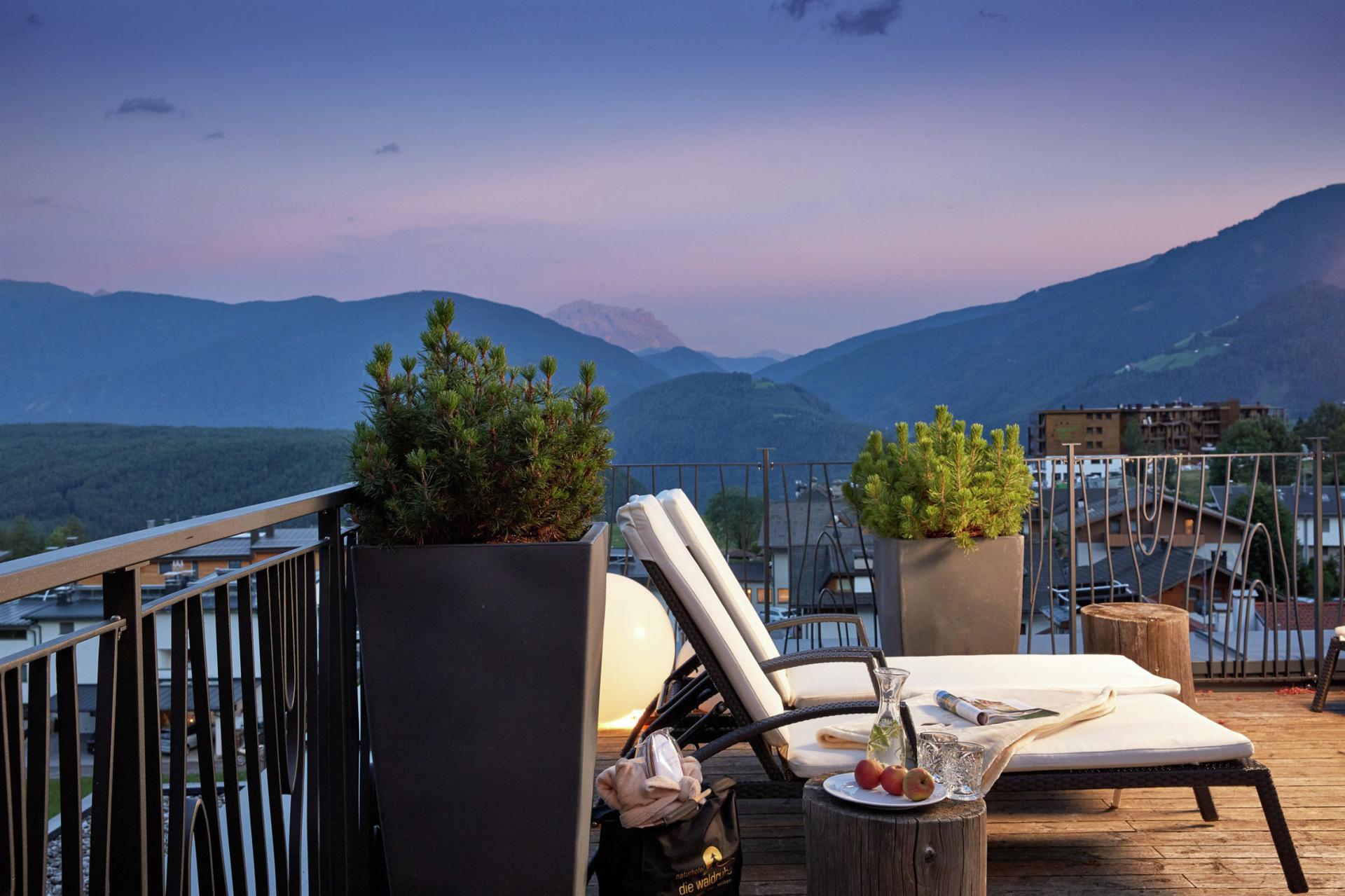 Fernab von Trubel und Hektik, eingebettet in die unberührte Berglandschaft des Pustertals, liegt das Naturhotel Die Waldruhe in Kiens am Kronplatz. Es ist der ideale Ort für Aktive, aber auch für alle, die sich eine wohltuende Auszeit wünschen. Entdecken Sie das ganze Jahr über den Zauber der Dolomiten bei erlebnisreichen Wanderungen oder gemütlichen Winterspaziergängen. Herrliche Ausblicke genießen Sie nicht nur mitten in Südtirols intakter Naturlandschaft, sondern auch in unserem großzügigen Wellnessbereich. Entspannen Sie Körper und Geist im Panoramahallenbad und gönnen Sie sich beruhigende Momente bei einem Saunagang, der durch wohlige Wärme entspannend auf Ihre Muskulatur wirkt. Lassen Sie Ihren Urlaubstag bei Sonnenuntergang auf dem Panoramasonnendeck Revue passieren und das wunderschöne Panorama der Dolomiten auf sich wirken. Auch kulinarisch werden Sie mit erlesenen Hochgenüssen und edlen Südtiroler Weinen verwöhnt.