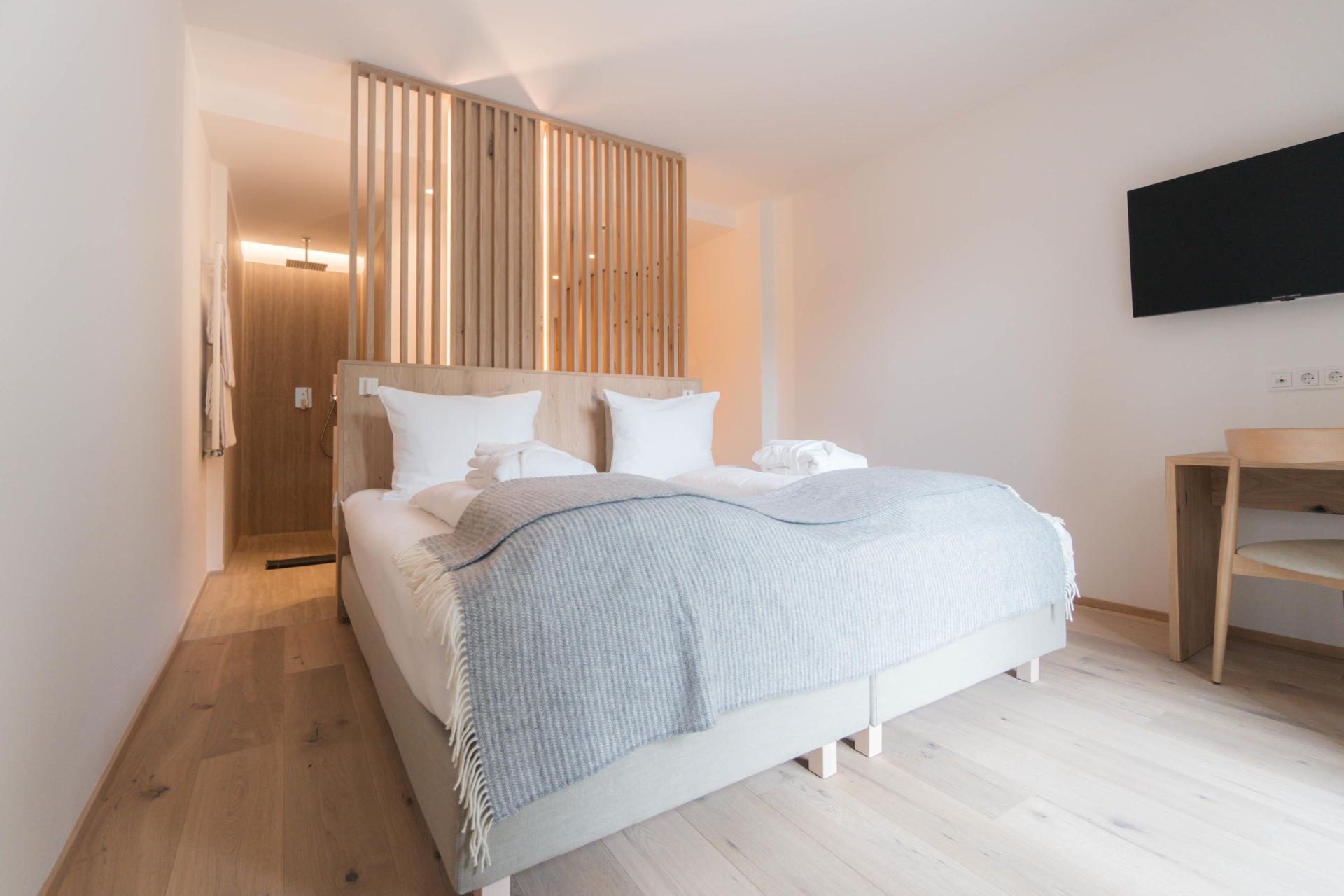 Camera doppia confortevole e accogliente per due persone dai materiali naturali e dai colori tenui. Il vostro spazio di relax.