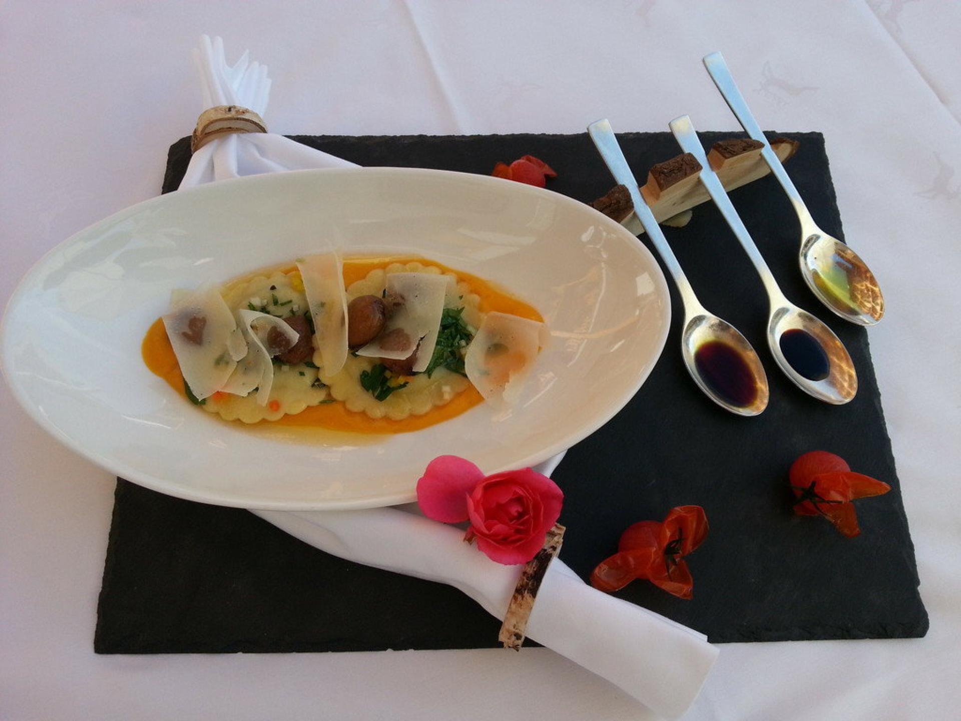 La Top Suite "Gallo Cedrone" Style spaziosa da 2 a 5 persone con profumato legno di larice e balcone, è ideale per la famiglia. Mette a disposizione una camera matrimoniale con letto king-size, angolo soggiorno separato con divano-letto, caminetto “The Flame“, 2 bagni con doccia a pioggia, WC & bidet separato, 2 Flat-TV, Radio, macchina da caffè "Nespresso" e angolo del tè, minibar.