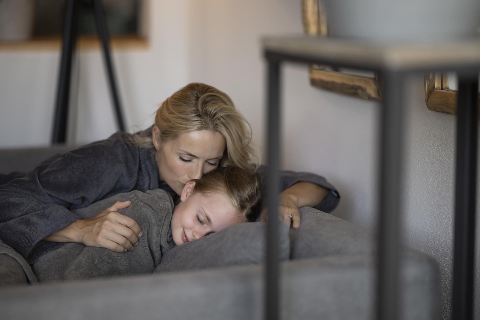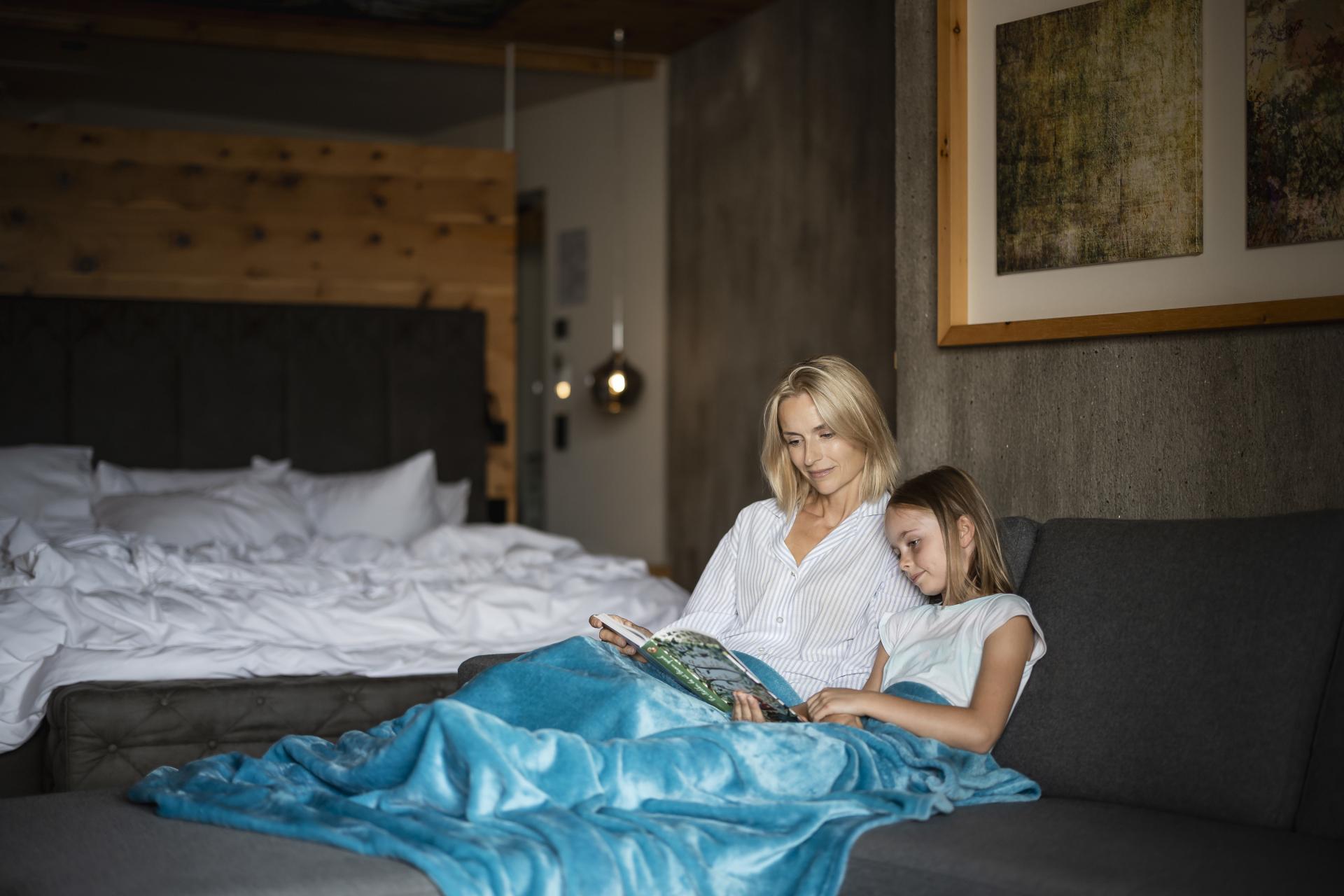 Camere per respirare a fondo: zone giorno soleggiate con terrazza privata, vista sul Lago di Resia, camera per bambini separata e divano letto per tutti coloro che apprezzano la flessibilità in vacanza.