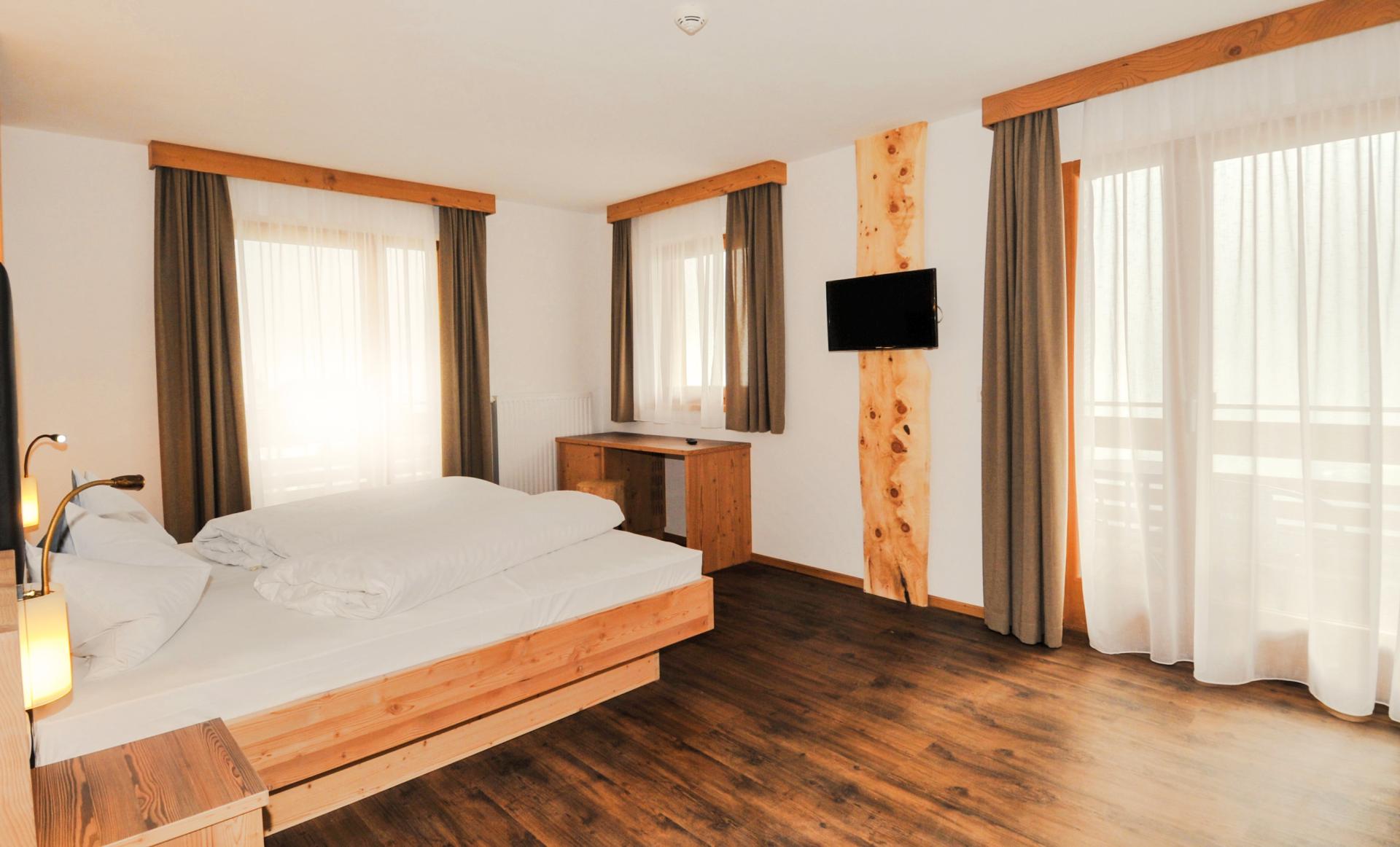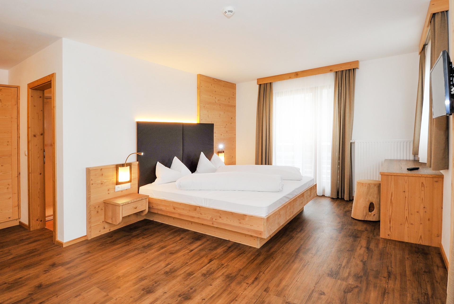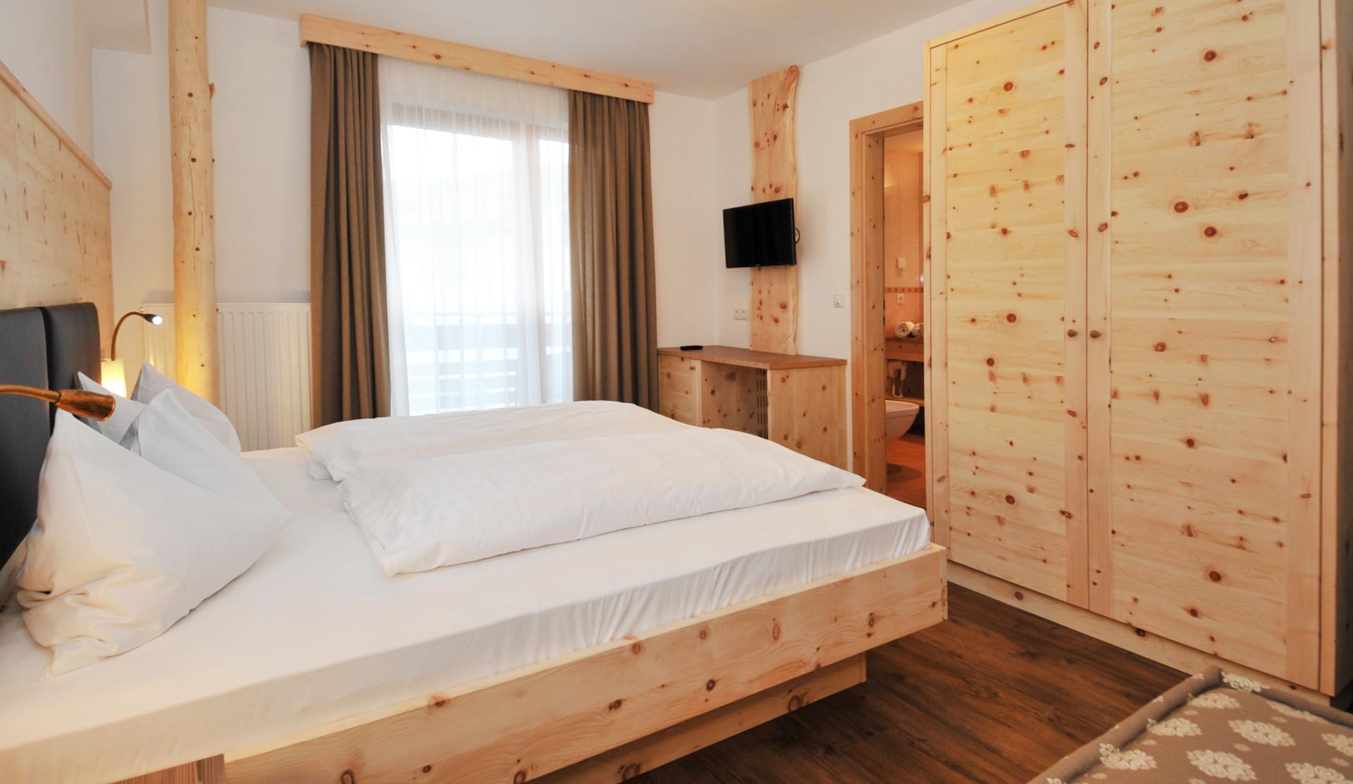 Nuova camera confortevole familiare nell'ala nuova. La camera é ampia, luminosa e molto accogliente, con arredi in legno di cirmolo. Il profumo benefico e avvolgente del cirmolo è molto piacevole e producce effetti riposanti e rigeneranti durante il sonno.