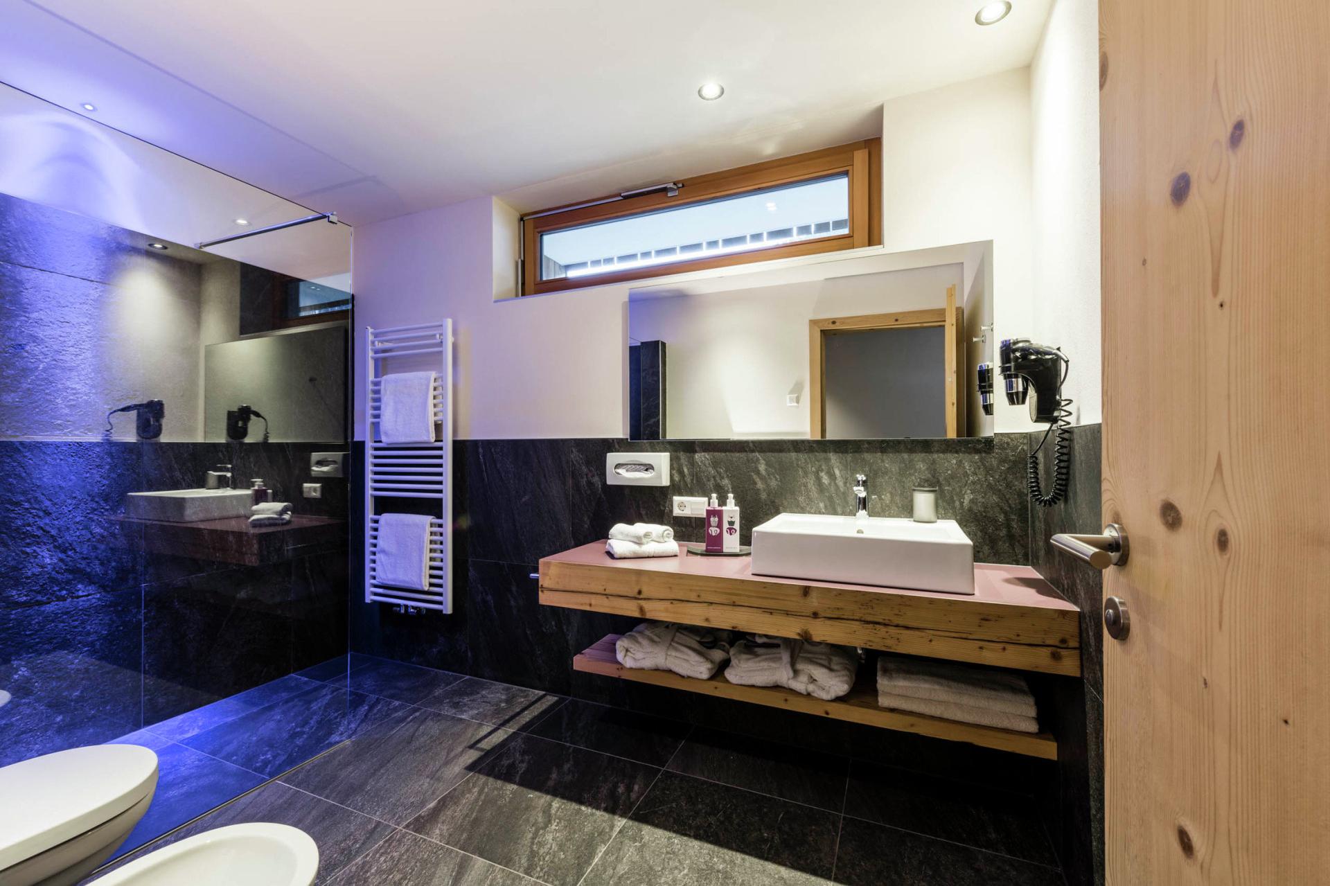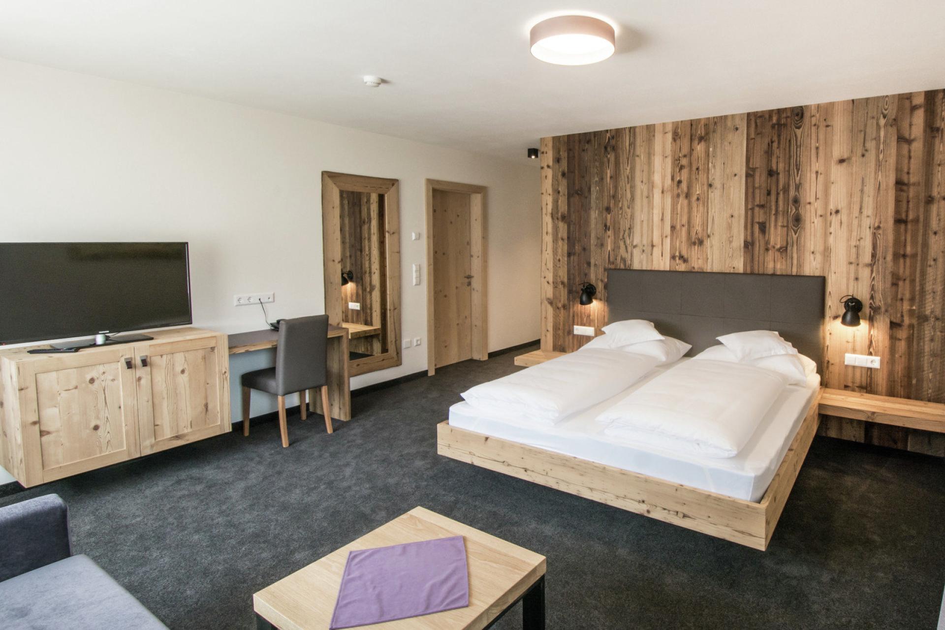 La Juniorsuite è una stanza luminosa e il balcone regala una splendida vista sulle montagne e la valle. È il piccolo rifugio per le vacanza ed è dotato di ogni comfort per farvi rilassare e stare bene.