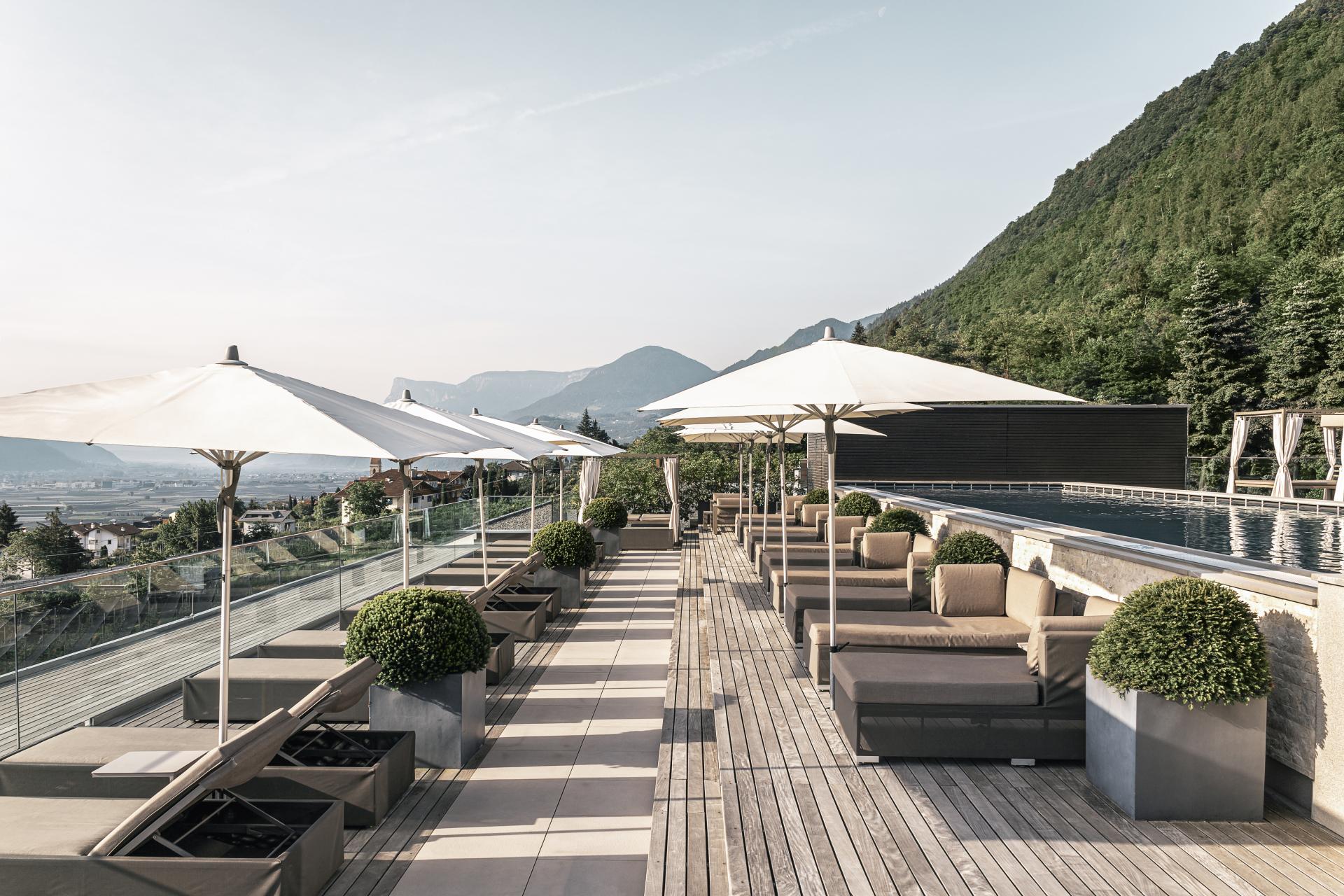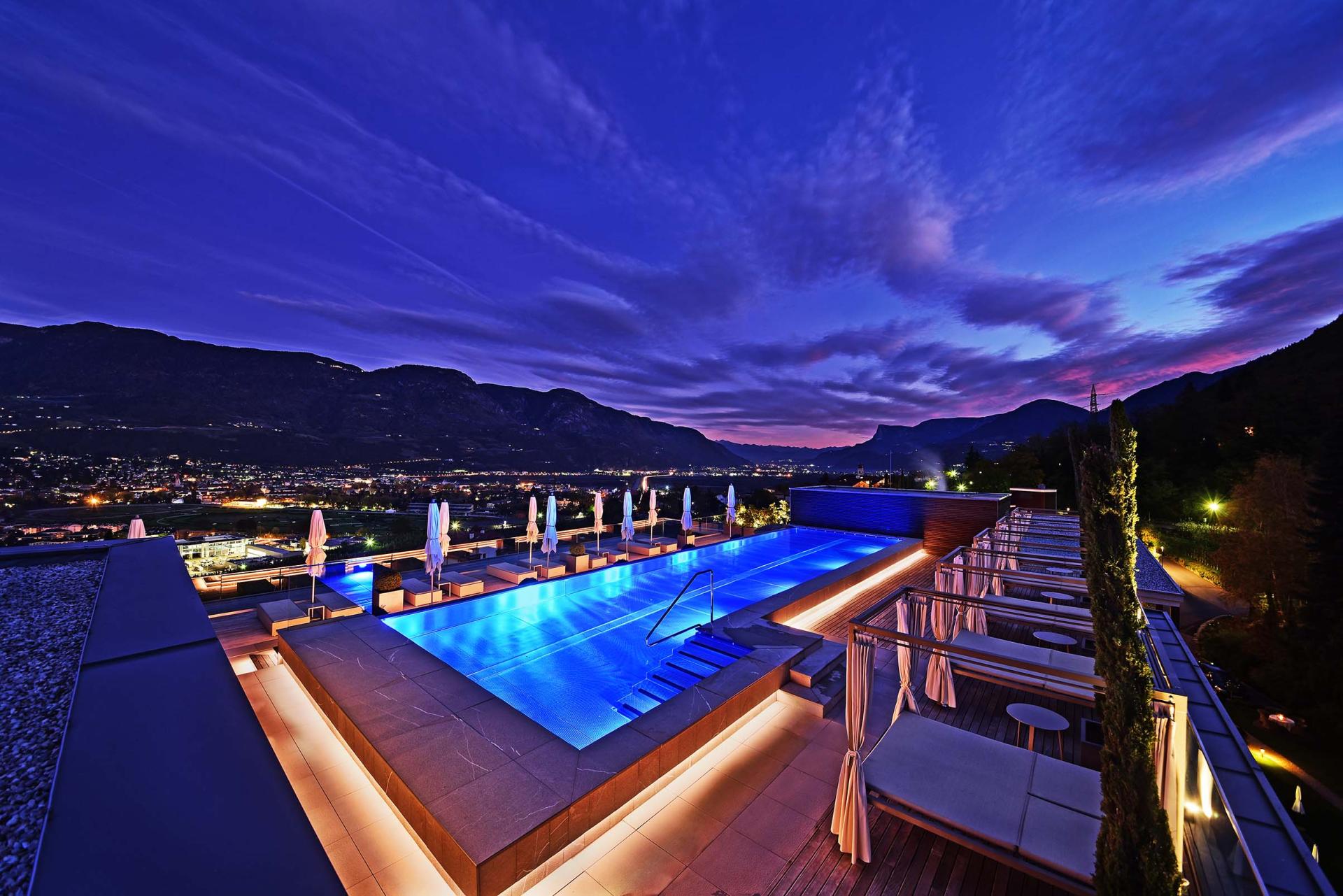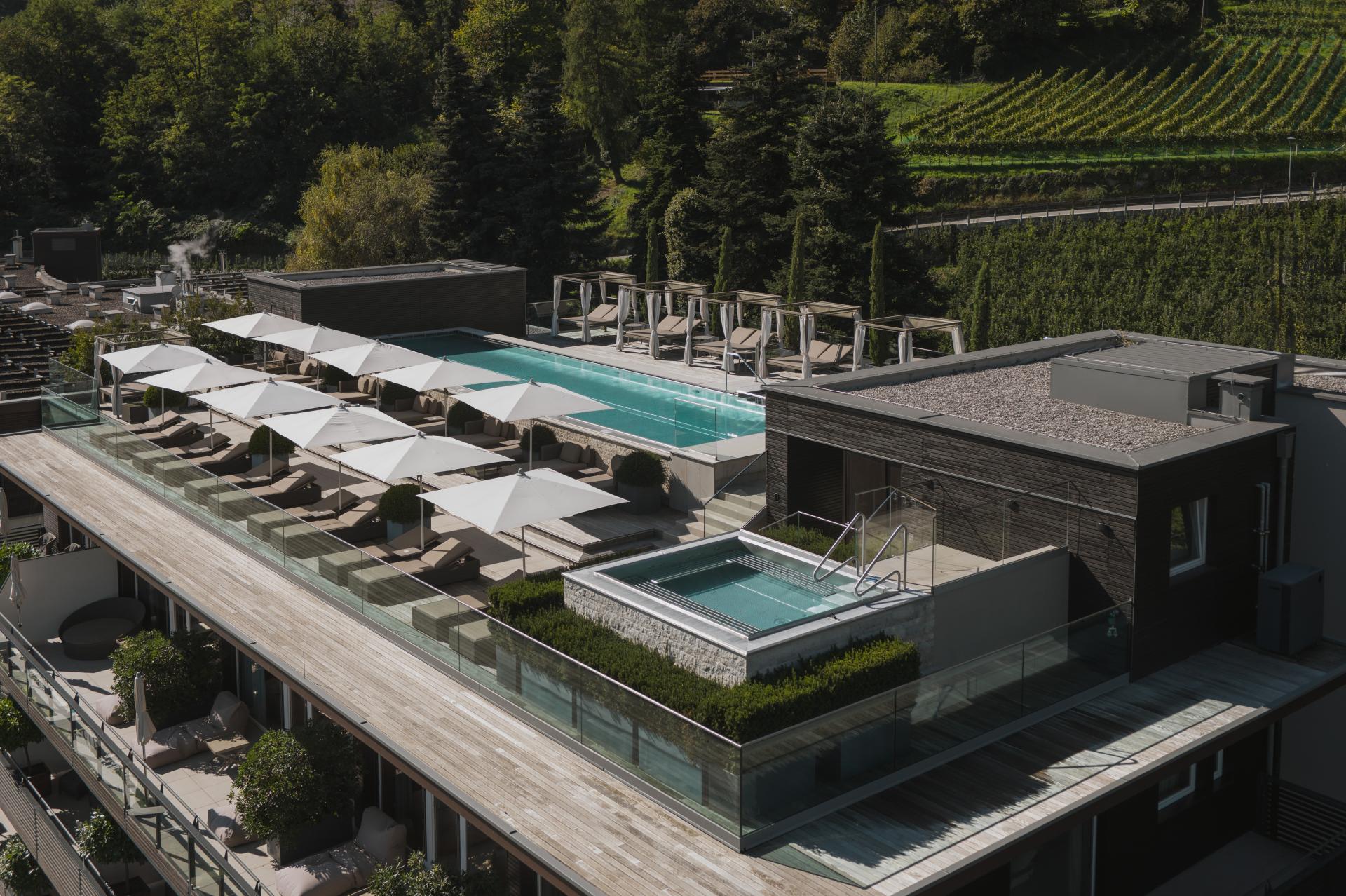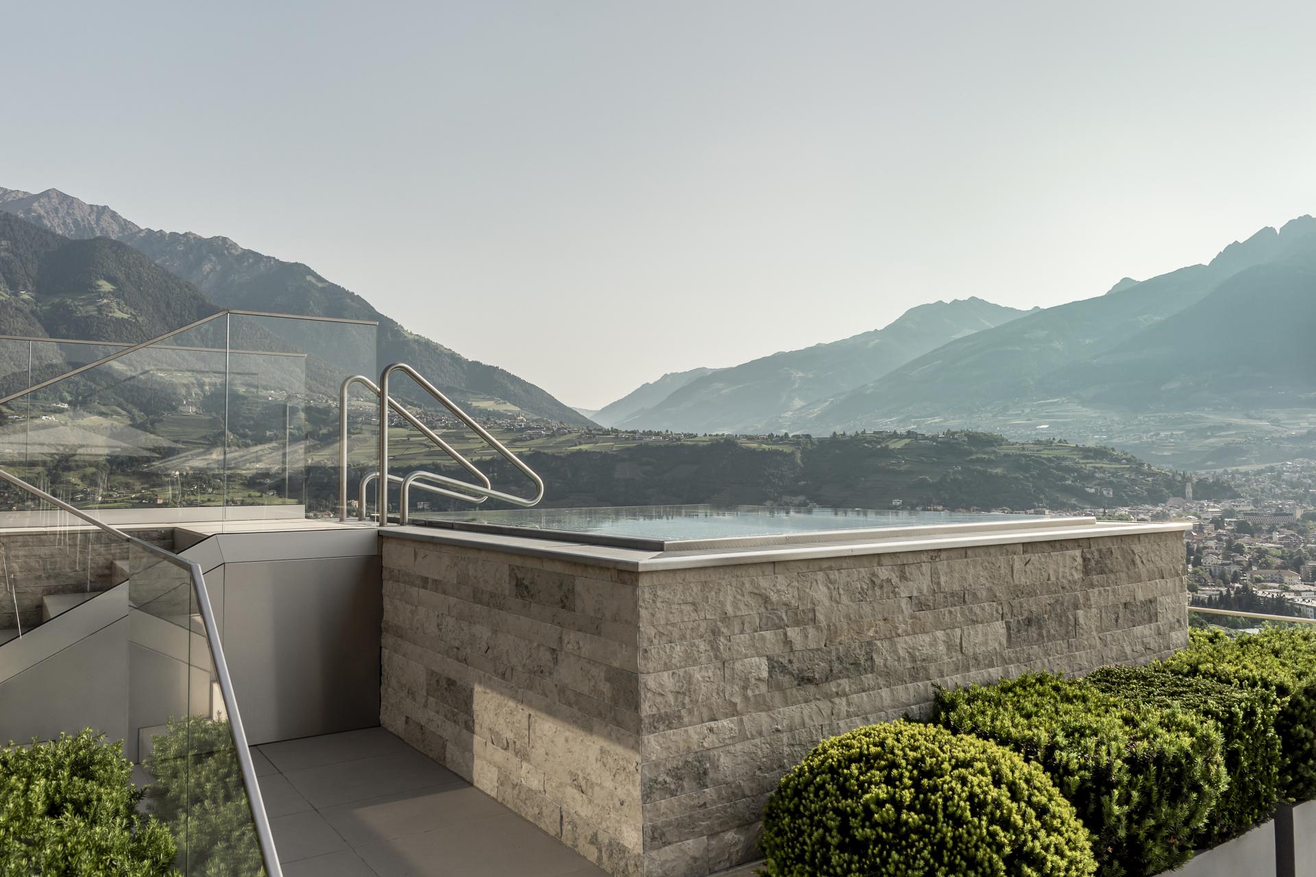 Immerso in un parco di 4.500 m² sopra la città termale di Merano, l’Hotel Giardino Marling è un raffinato hotel a 5 stelle dove relax, benessere e gusto si fondono in perfetta armonia. Circondato da meleti e vigneti, regala una vista panoramica unica sulla conca di Merano, in un luogo suggestivo dove la terra sembra toccare il cielo.L’esperienza gastronomica è uno dei punti di forza: la mezza pensione gourmet propone una colazione ricercata, da gustare anche nel parco in totale intimità, e ogni sera un delizioso menu che unisce specialità altoatesine e piatti mediterranei. Una cantina con etichette regionali e internazionali completa il viaggio nel gusto.La moderna area wellness con sky pool riscaldata, idromassaggio sulla terrazza panoramica, diverse saune e aree relax offre un benessere profondo. A disposizione delle famiglie anche piscina coperta e piscina esterna nel giardino. Gli amanti dello sport troveranno un campo da tennis privato, un ricco programma fitness, escursioni guidate e campi da golf nelle vicinanze con sconto sul green fee. Grazie alla posizione strategica, a soli tre chilometri da Merano, l’Hotel Giardino Marling è il punto di partenza ideale per una vacanza di lusso in Alto Adige.