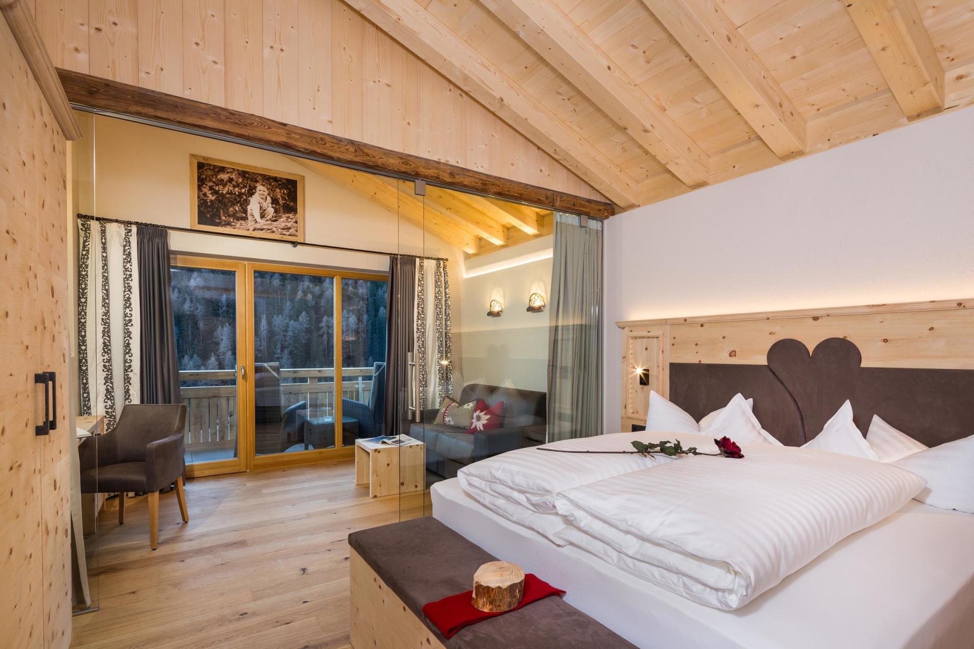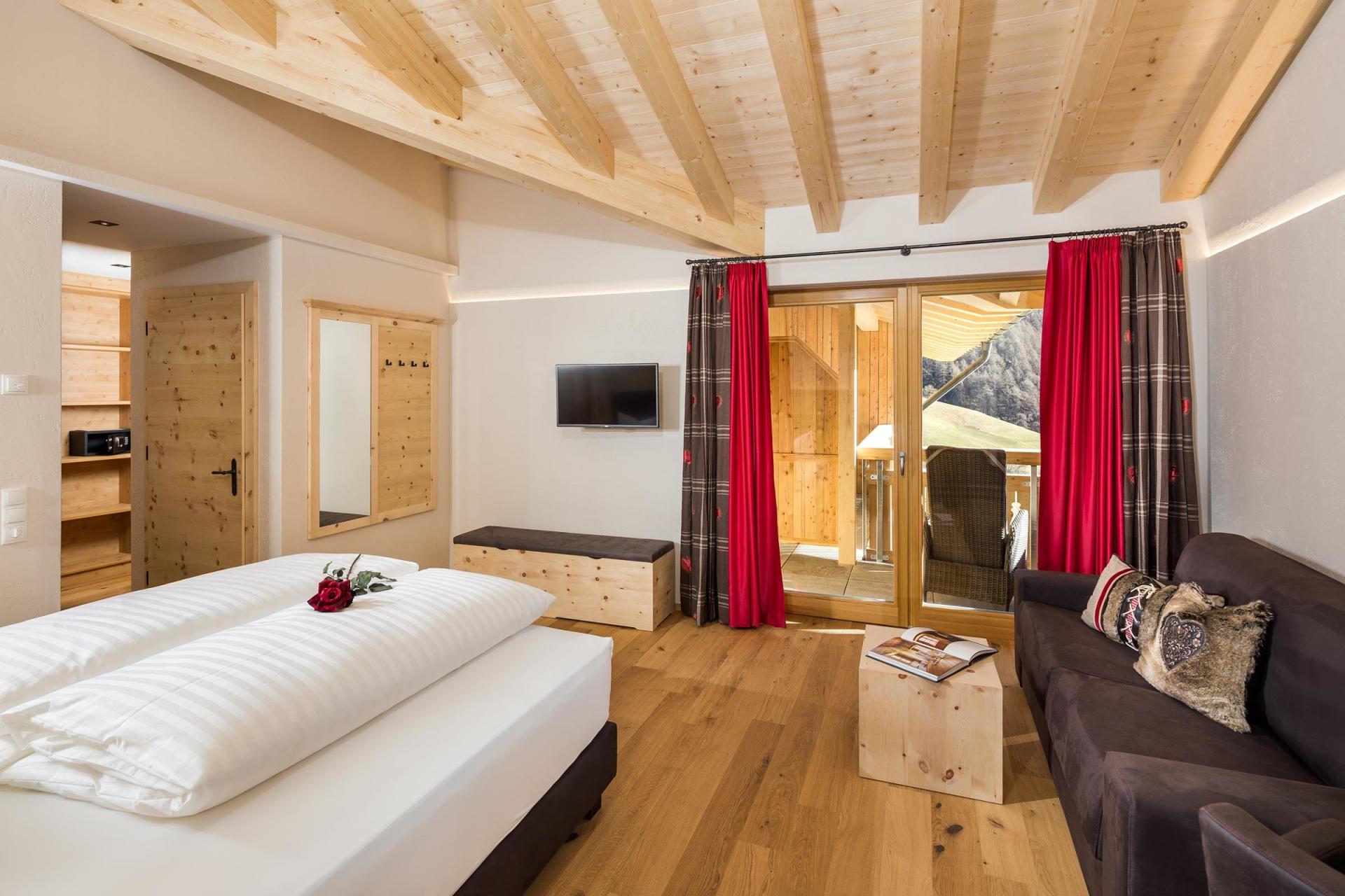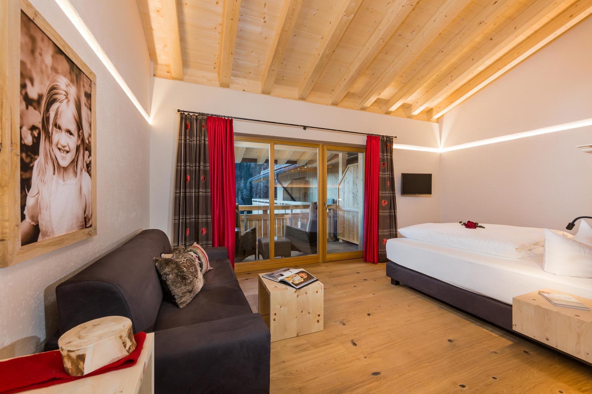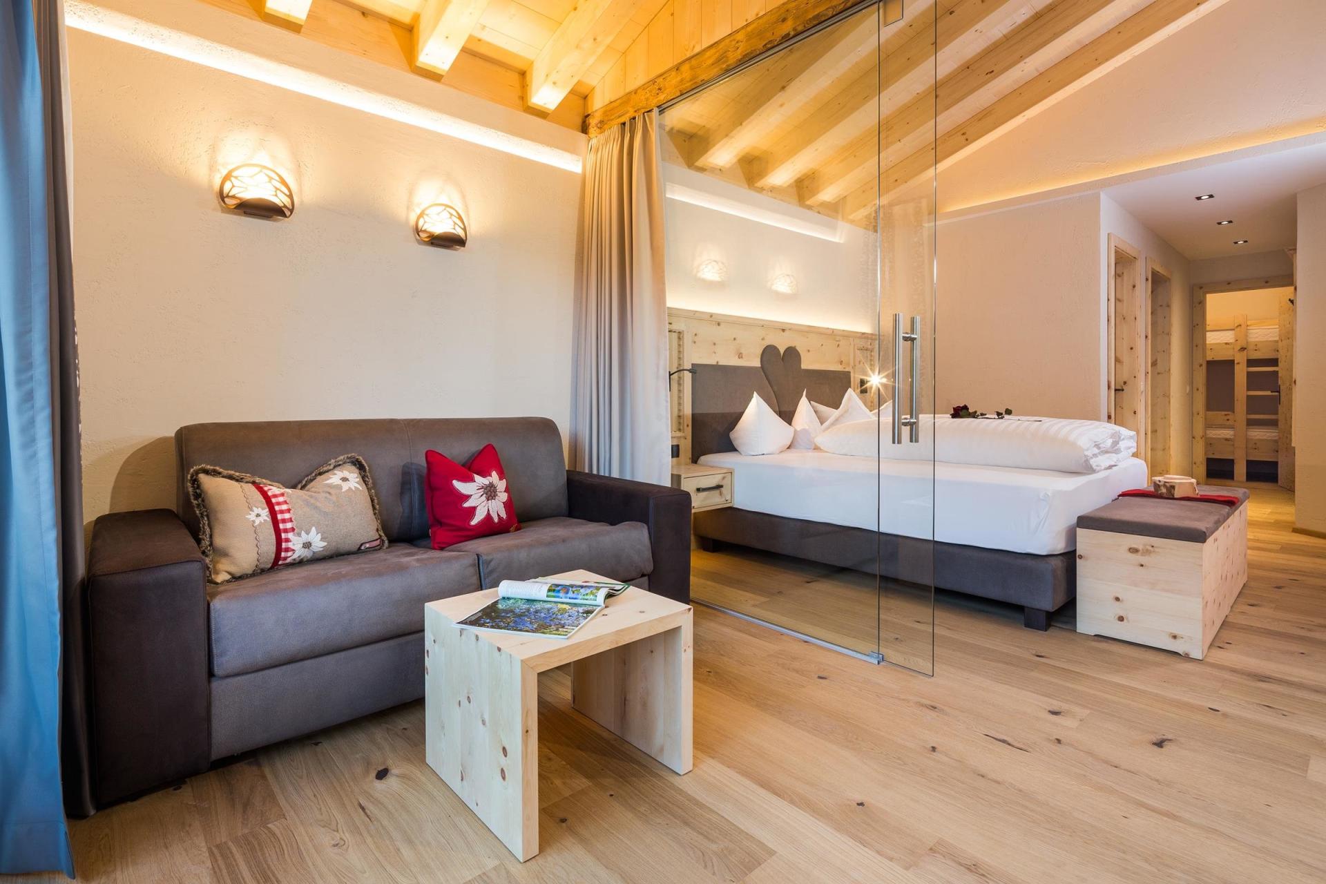 La nostra suite familiare Superior in pino cembro è il luogo perfetto per trascorrere momenti indisturbati con la propria famiglia. Le suite dispongono di: