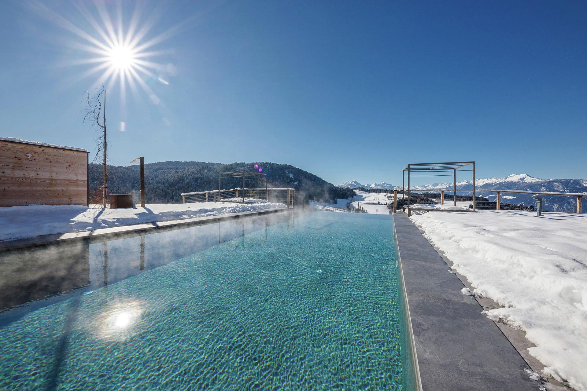 All’Hotel Avelina ad Avelengo vi attendono tantissimi highlight. Se desiderate prendervi una pausa dallo stress quotidiano, il nostro hotel è la meta che fa per voi. Ci troviamo in una posizione panoramica splendida, sopra la città termale di Merano, circondati da prati e boschi. La struttura offre svariate possibilità per ogni progetto: Merano, con le sue tante attrazioni, si trova a soli 10 km di distanza; numerosi sentieri e percorsi ciclabili partono direttamente dal nostro hotel; il comprensorio escursionistico e sciistico di Merano 2000 sorge nelle immediate vicinanze. Dopo una giornata ricca di emozionanti esperienze nella natura, potrete recuperare le energie nella nostra area wellness con sauna finlandese panoramica, piscina Infinity interna ed esterna riscaldata, zona relax panoramica, sala fitness, spa per massaggi rilassanti e molto altro. Venite a trovarci, per una vacanza di indisturbata quiete e rigenerazione a stretto contatto con la natura.