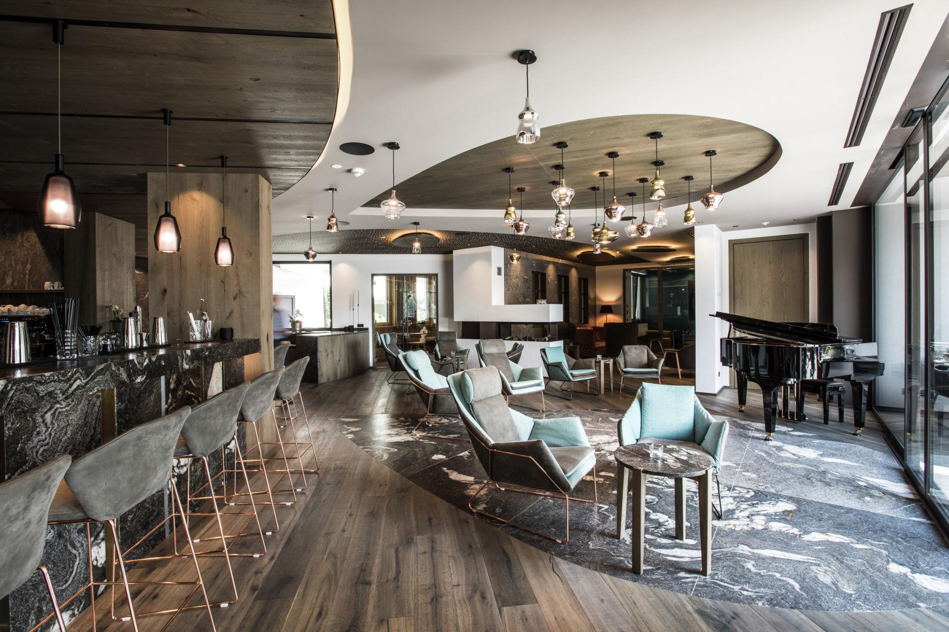 Suite lussuosa situata all'ultimo piano con panorama mozzafiato e l'esclusiva cabina a infrarossi "Luis Trenker". Terrazza di 24 m² con Whirlpool e lettino prendisole. Arredamento con materiali naturali. Letti boxspring e angolo living con poltrone davanti alla finestra, trasformabili in un letto per due persone. Ampio bagno con doppio lavandino, doccia grande, vasca outstanding, WC seperato e bidet. Aria condizionata. TV satellitare, telefono, cassaforte e WiFi gratuito. Cani non accettati. Un parcheggio gratuito