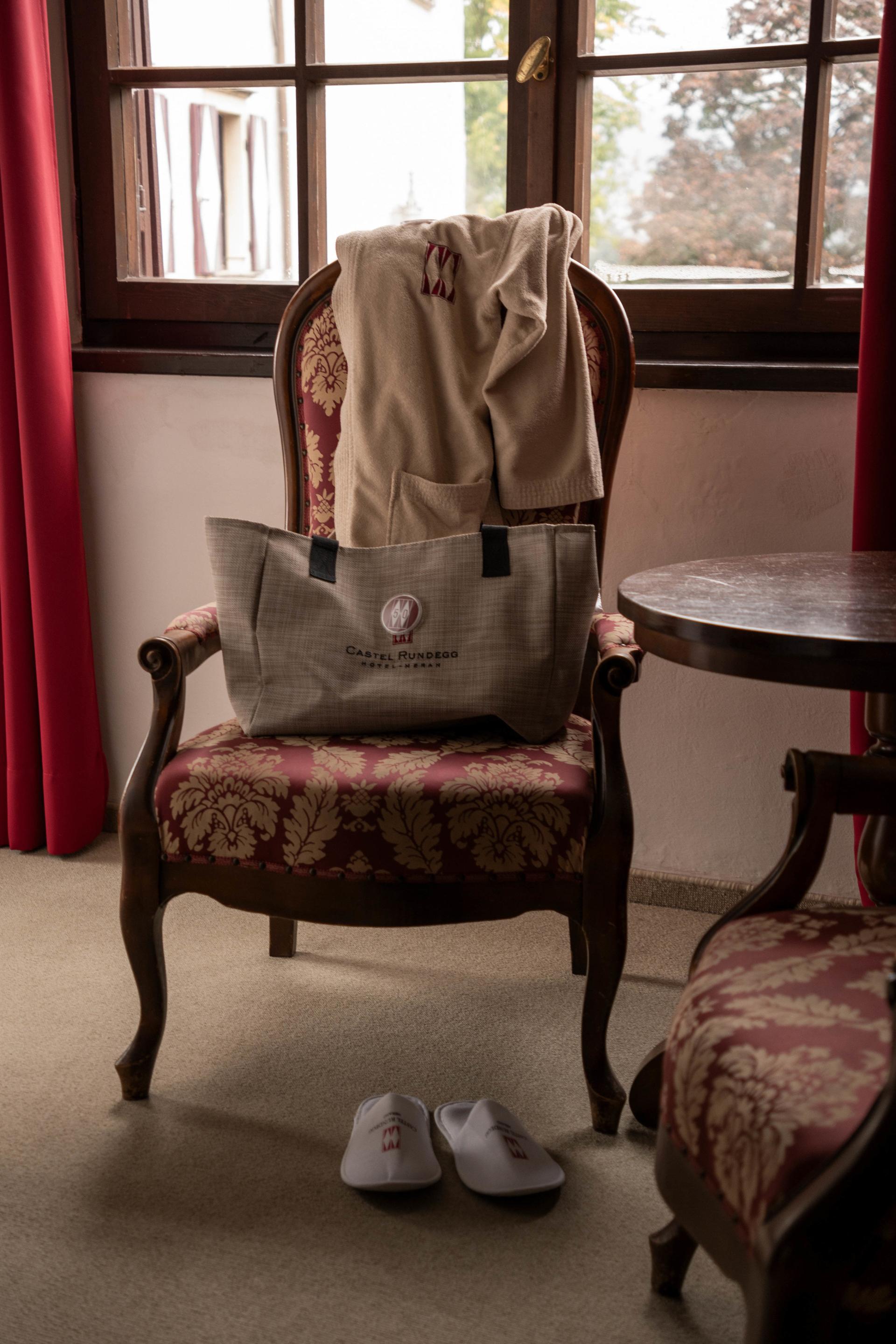 - borsa wellness a disposizione in camera con accappatoio morbido e ciabatte