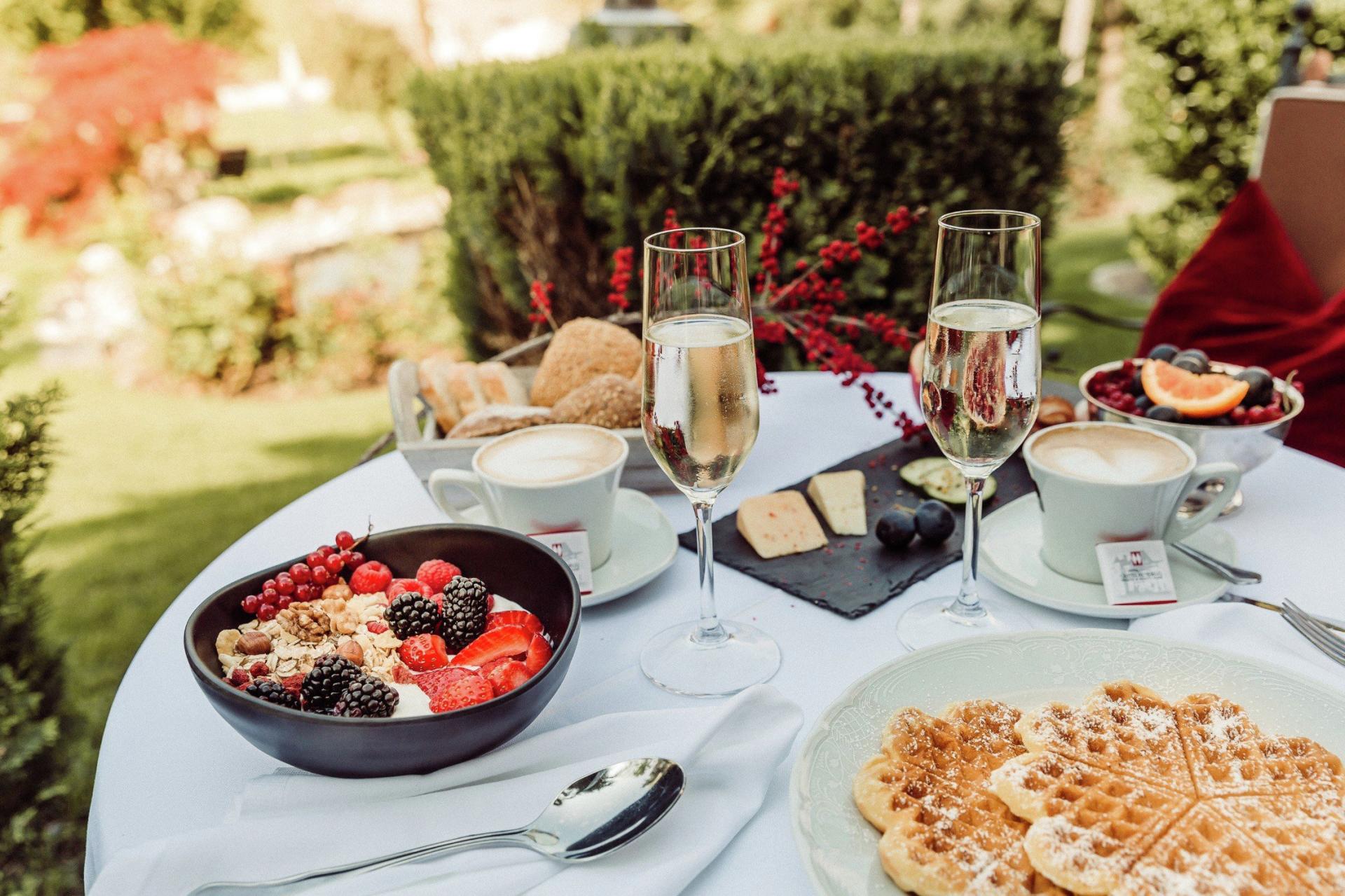 Estate a Merano! Tra una bella colazione ricca sulla nostra terrazza al esterno, poi esplare la cittá o le montagne e rilassarsi nel nostro grande parco con piscina