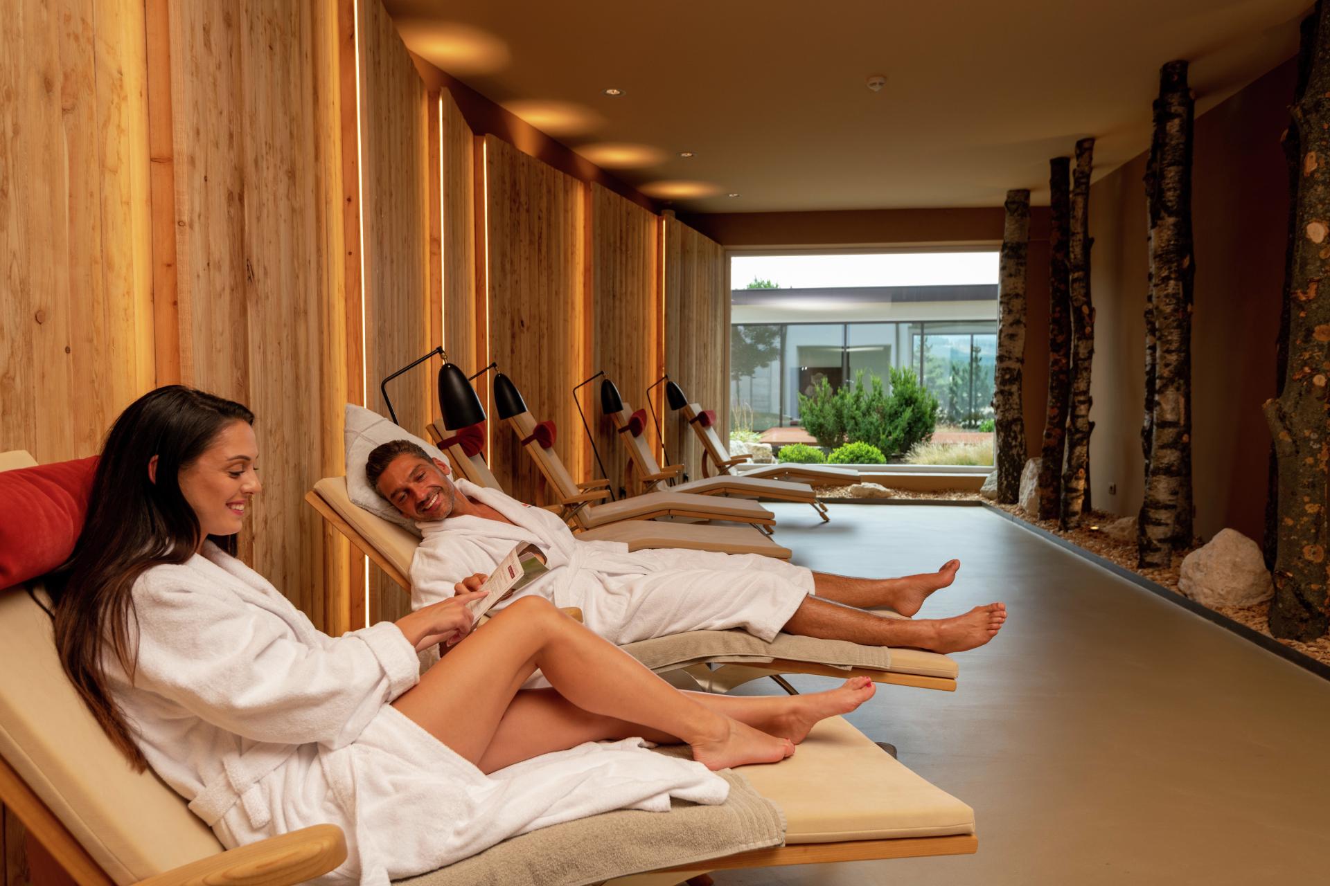 Ampia camera doppia in legno di larice di circa 30 m²: doccia e bidet, TV satellitare a schermo piatto, telefono, cassaforte, balcone rivolto a sud o sud-est, WiFi e parcheggio interrato.