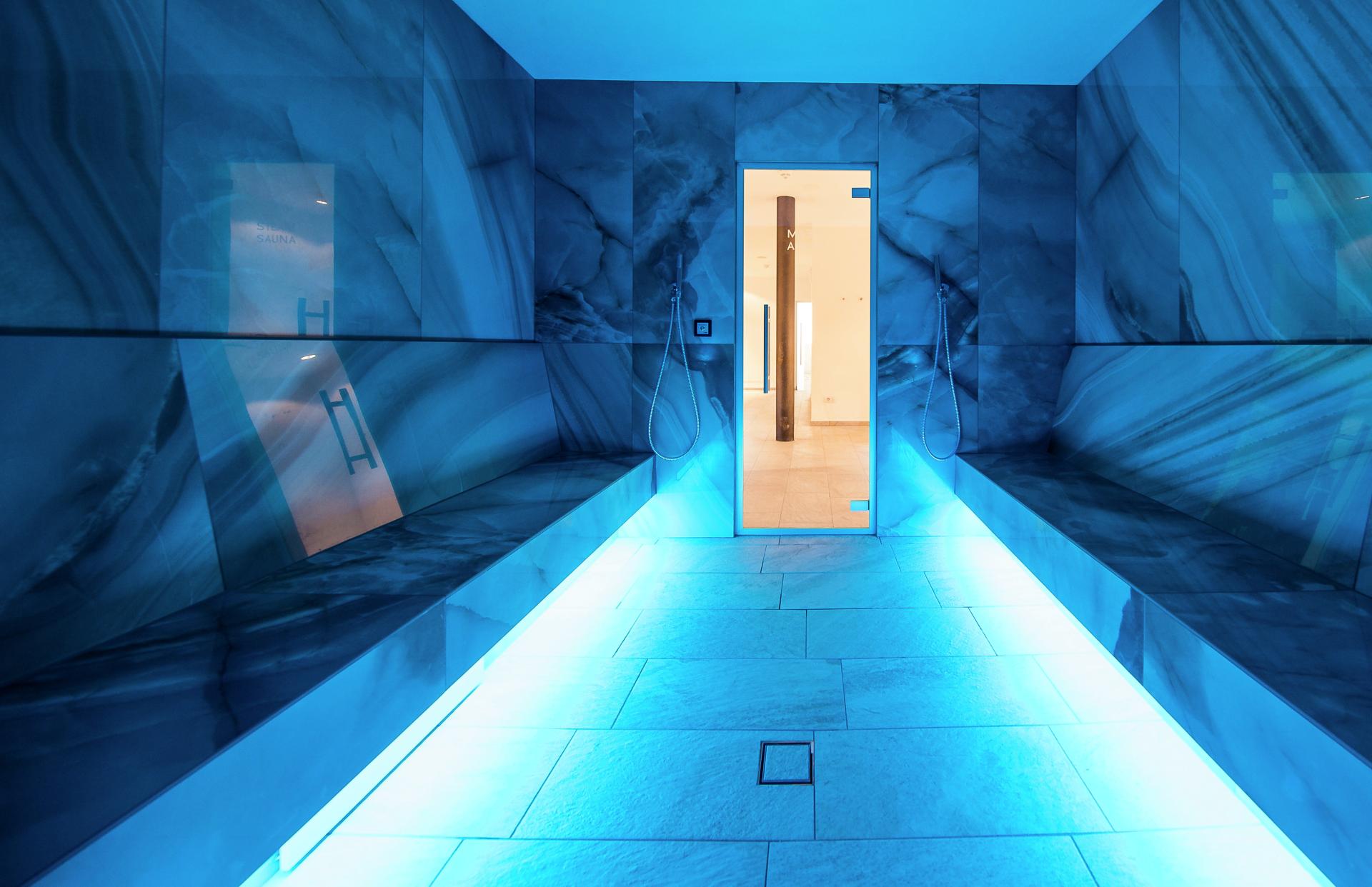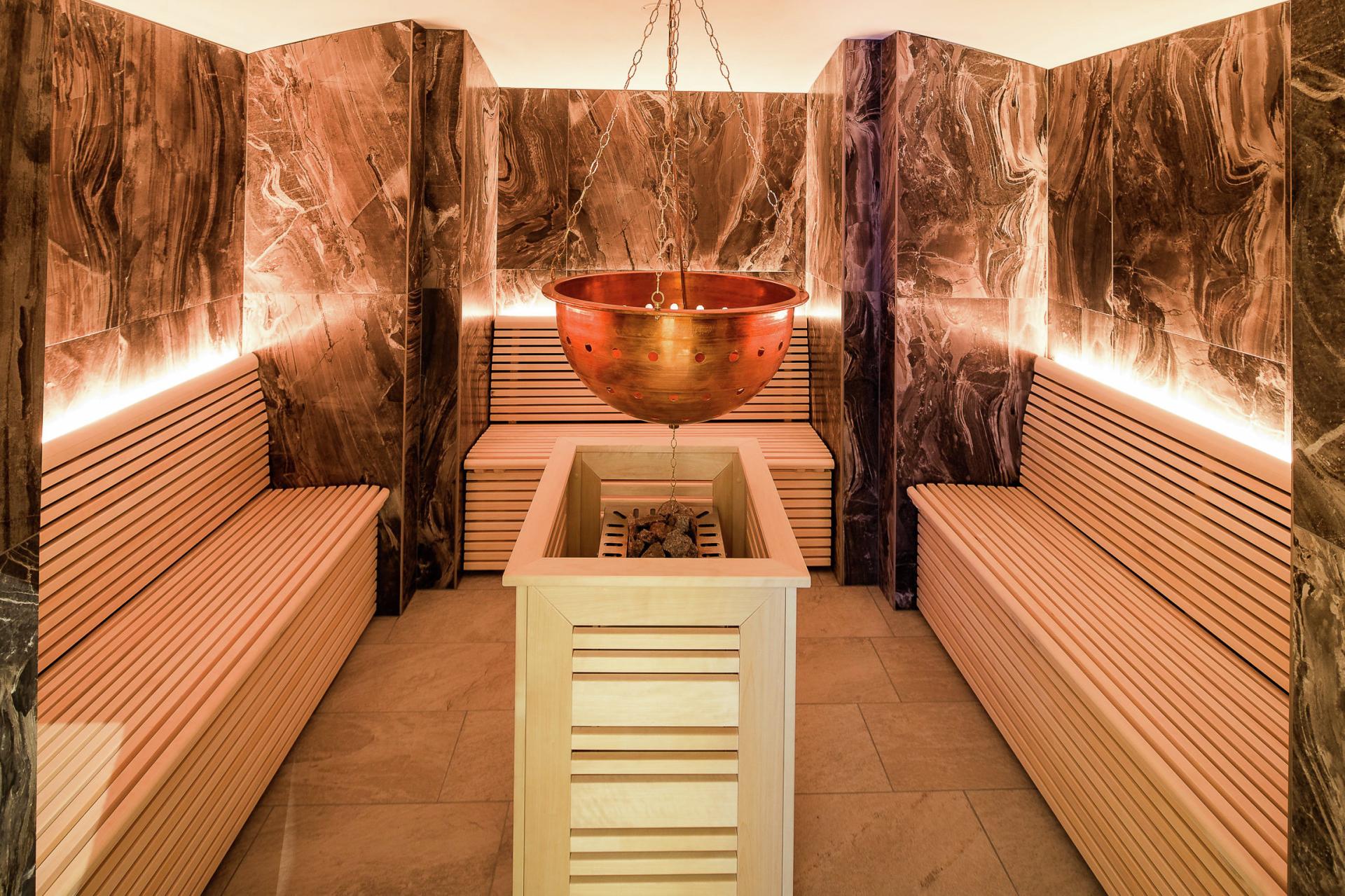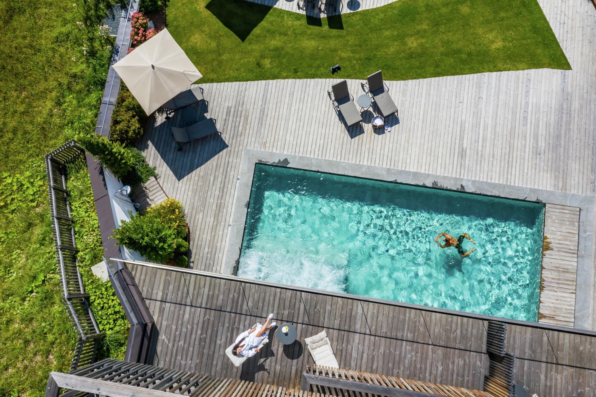 Suite di circa 110 m²: 1 soggiorno, 2 camere doppie, 1 bagno con doccia a pioggia e 1 bagno panoramico con vasca autoportante, bidet e sauna finlandese, TV satellitare a schermo piatto, telefono, cassaforte, 1 balcone rivolto a sud e 1 balcone rivolto a est, macchina per caffè e bollitore in camera, WiFi e parcheggio interrato.