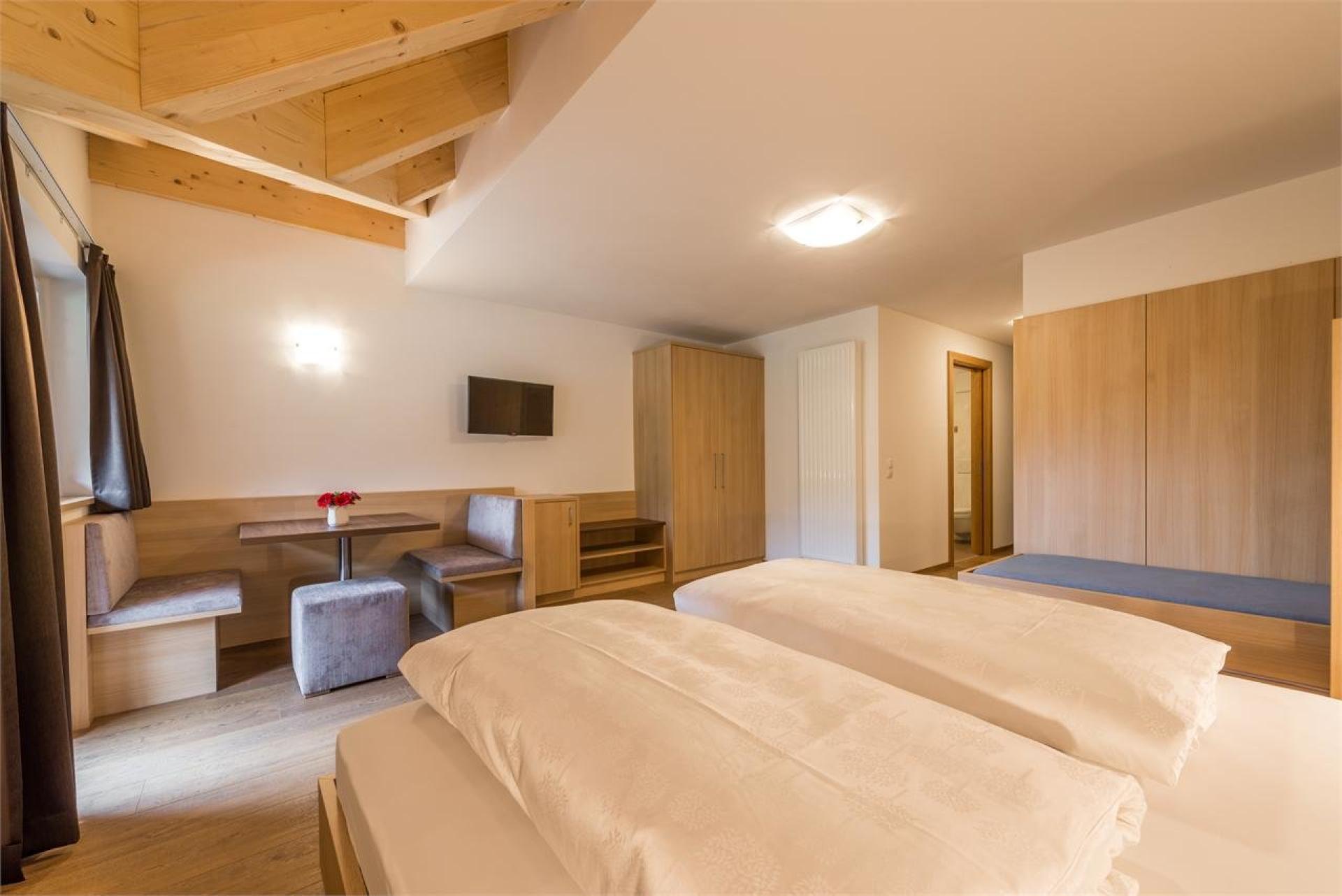 Vivere momenti romantici nell’Alpin Hotel Gudrun di Colle Isarco. A vostra disposizione un’accogliente camera da letto (ca. 30 mq) con bellissima vista panoramica. Tutte le camere dispongono di bagno con doccia/wc, specchio cosmetico e detergenti per la doccia, asciugacapelli, tv led satellitare, cassetta di sicurezza, telefono a selezione diretta; quasi tutte le camere dispongono di balcone. Collegamento internet gratuito in tutto l’hotel. Nelle camere triple, ai bambini accompagnati da due adulti paganti a prezzo pieno riserviamo i seguenti sconti: bambini fino a 3 anni: 100% di sconto; bambini dai 3 agli 8 anni: 50% di sconto; bambini dagli 8 ai 12 anni 20% di sconto; giovani adulti dai 12 anni, oppure terzo adulto in camera: 10% di sconto.