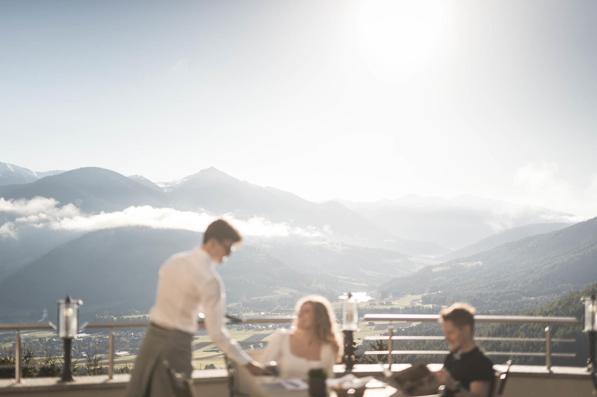 Svegliarsi e godersi la vista a 360 gradi sulla terrazza panoramica: qui a Sorafurcia, a 1 350 metri di altitudine, vi sembrerà di essere “al di sopra di tutto” in un mondo sospeso tra leggendarie Dolomiti e valli idilliache.