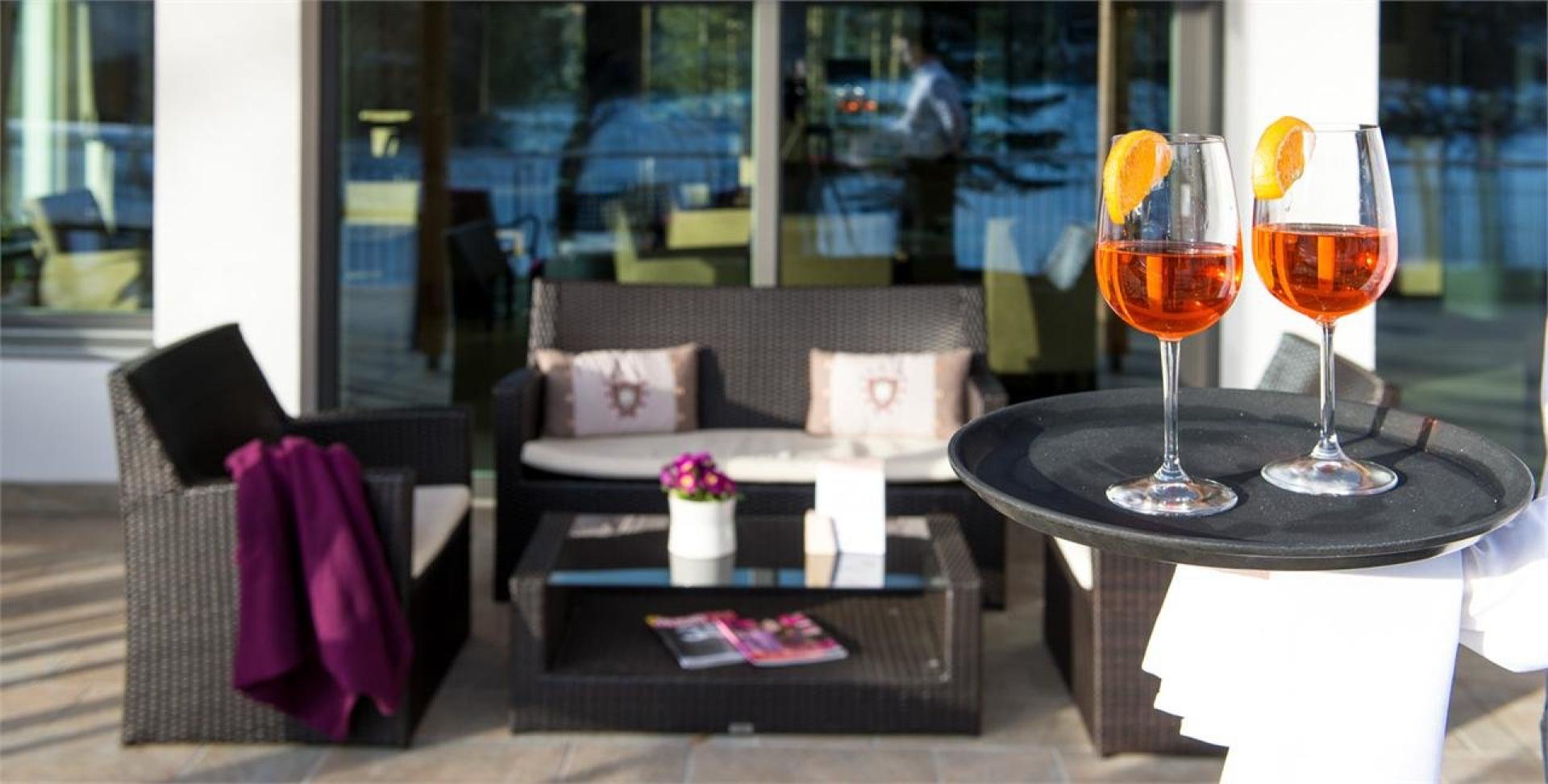 Camere doppie confortevoli in stile moderno con balcone, pavimento in legno, ampio bagno con WC (alcune camere con bagno semiaperto e WC separato) TV 26" con canali satellitari, WiFi, telefono e borsa wellness con soffice accappatoio e telo da sauna
