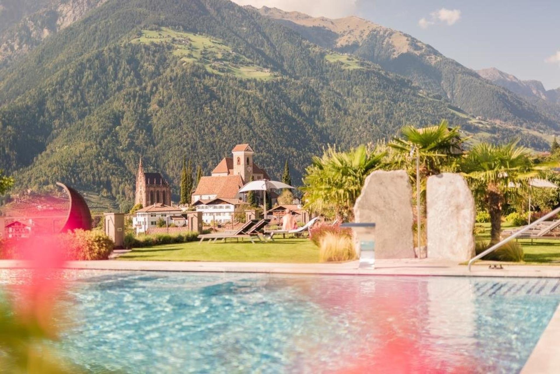 L’hotel Resmairhof a 4 stelle Superior situato nella soleggiata Scena, nel meranese, ha una personalità particolare che incanta e seduce, grazie anche allo spettacolare panorama che fa da sfondo a qualsiasi prospettiva da cui si guardi. Nel mezzo di un sogno in una delle eleganti camere o suite, nel totale relax del vostro percorso benessere in spa, o stando seduti comodi nella terrazza panoramica ad assaporare le prelibatezze appena giunte in tavola: la visuale che accompagna il vostro sguardo è a dir poco sensazionale, uno scenario naturale di pura bellezza che trasformerà la vostra vacanza in un capolavoro di perfezione. Dimenticate la routine quotidiana e lasciatevi andare a questo universo di assoluta pace e distensione. L’oasi wellness con piscina interna ed esterna riscaldata, una vasca idromassaggio rigenerante, un prato per prendere il sole e un ampio mondo delle saune: semplicemente idilliaco. Fate del bene al vostro io, rilassando mente e corpo con un massaggio o con uno dei trattamenti spa. Gli amanti della buona tavola si leccheranno i baffi con le deliziose prelibatezze della raffinata cucina gourmet.