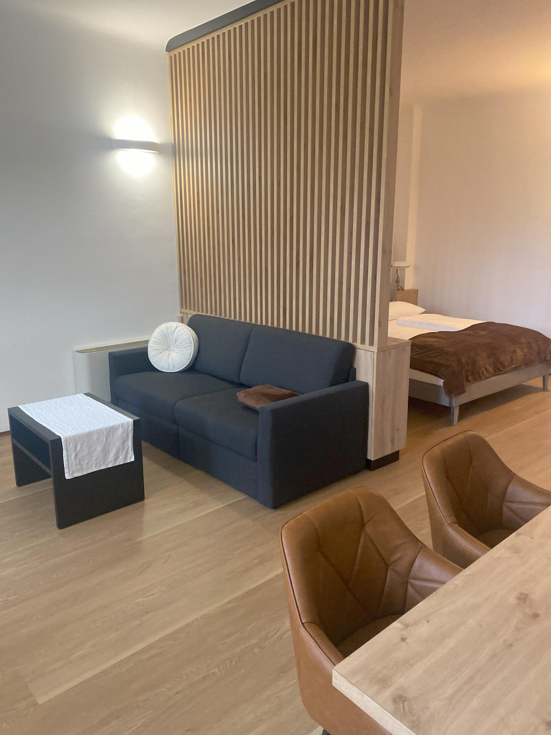 Vivete come a casa vostra nel vostro appartamento di 48 mq nello storico Palace Hotel a Colle Isarco. L'appartamento per le vacanze dispone di un balcone con una fantastica vista sulle montagne della Val di Fleres, una piccola cucina, un soggiorno con divano letto e TV satellitare, un letto matrimoniale e un bagno con doccia, WC, bidet, lavatrice e asciugacapelli. Naturalmente è possibile prenotare l'appartamento con colazione o mezza pensione (presso l'Hotel Schaurhof). Naturalmente sono disponibili anche i servizi dell'hotel, come piscina, sauna e programma di attività nell'hotel principale, l'Hotel Schaurhof.