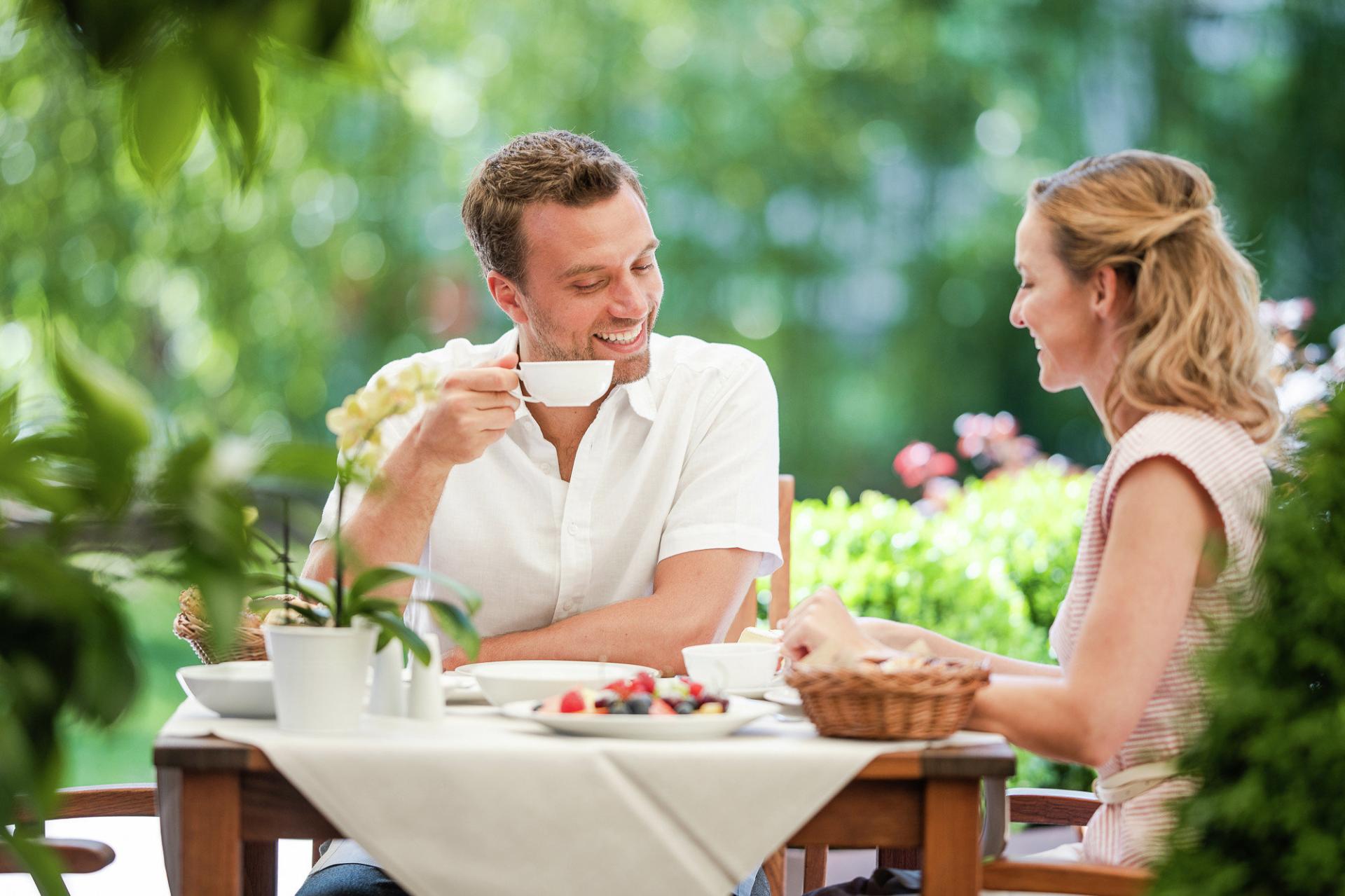Per la coppia o in famiglia, le nostre Vita Suite (ca. 60 m²) offrono tanto spazio per il relax e per se stessi grazie alla zona giorno separabile. Le suite sono dotate di due bagni completamente rinnovati con doccia e vasca. Gli ampi balconi rivestiti in legno vi regalano una vista completa sul parco termale o sul centro storico di Merano. Perfetto per ammirare il panorama in lontananza.
