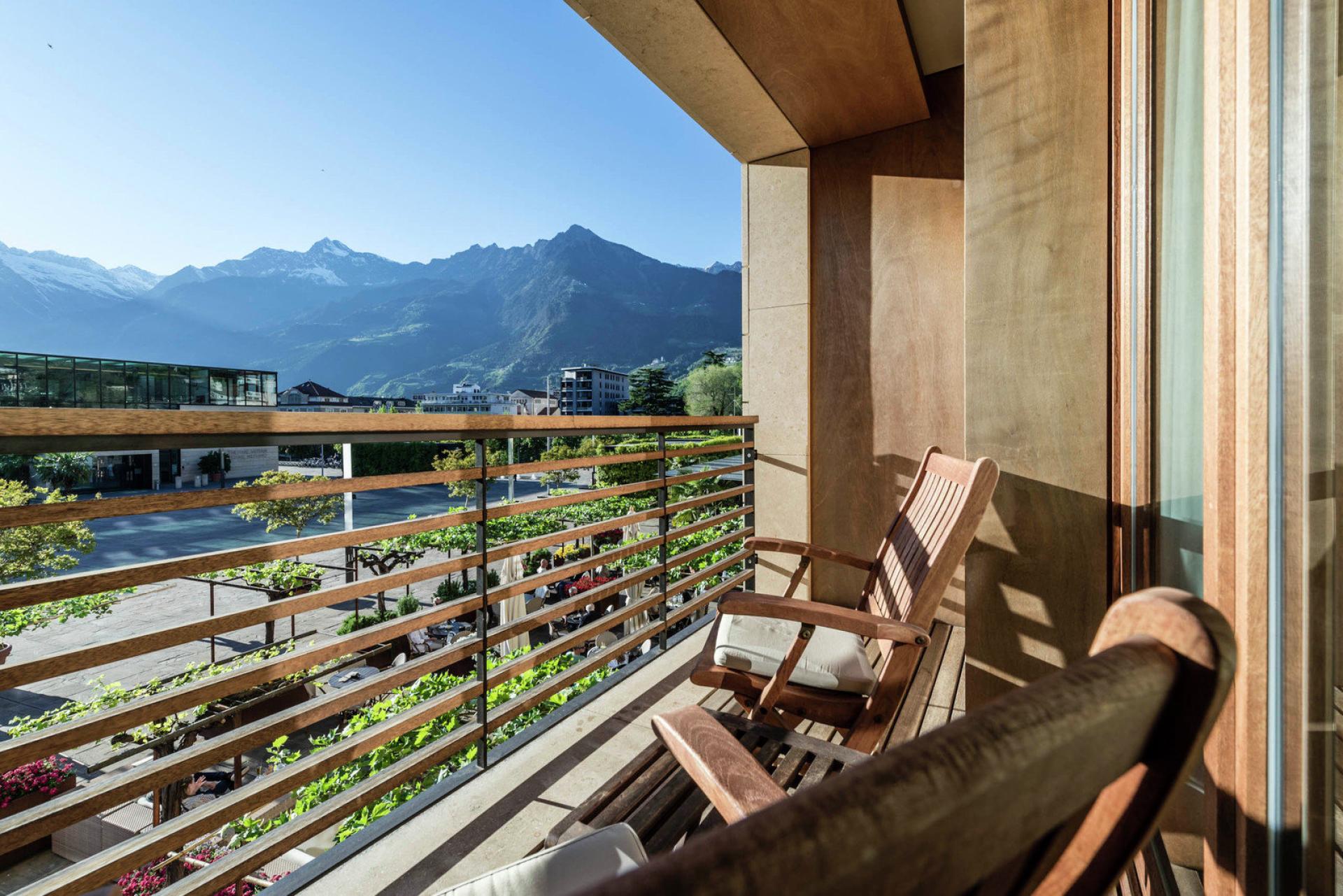 Le Suite (ca. 60 m²) con spettacolare vista sul Parco delle Terme oppure sul centro storico di Merano offrono un ambiente di stile elegante e spazioso per sentirvi immediante a vostro agio. Sono dotate di bagno aperto con doccia e vasca. Buono a sapersi: le nostre Suite si presentano con diversi finiture e design. Alcune dispongono di un balcone rivestito in legno, altre hanno alte finestre che inondano la stanza di luce.