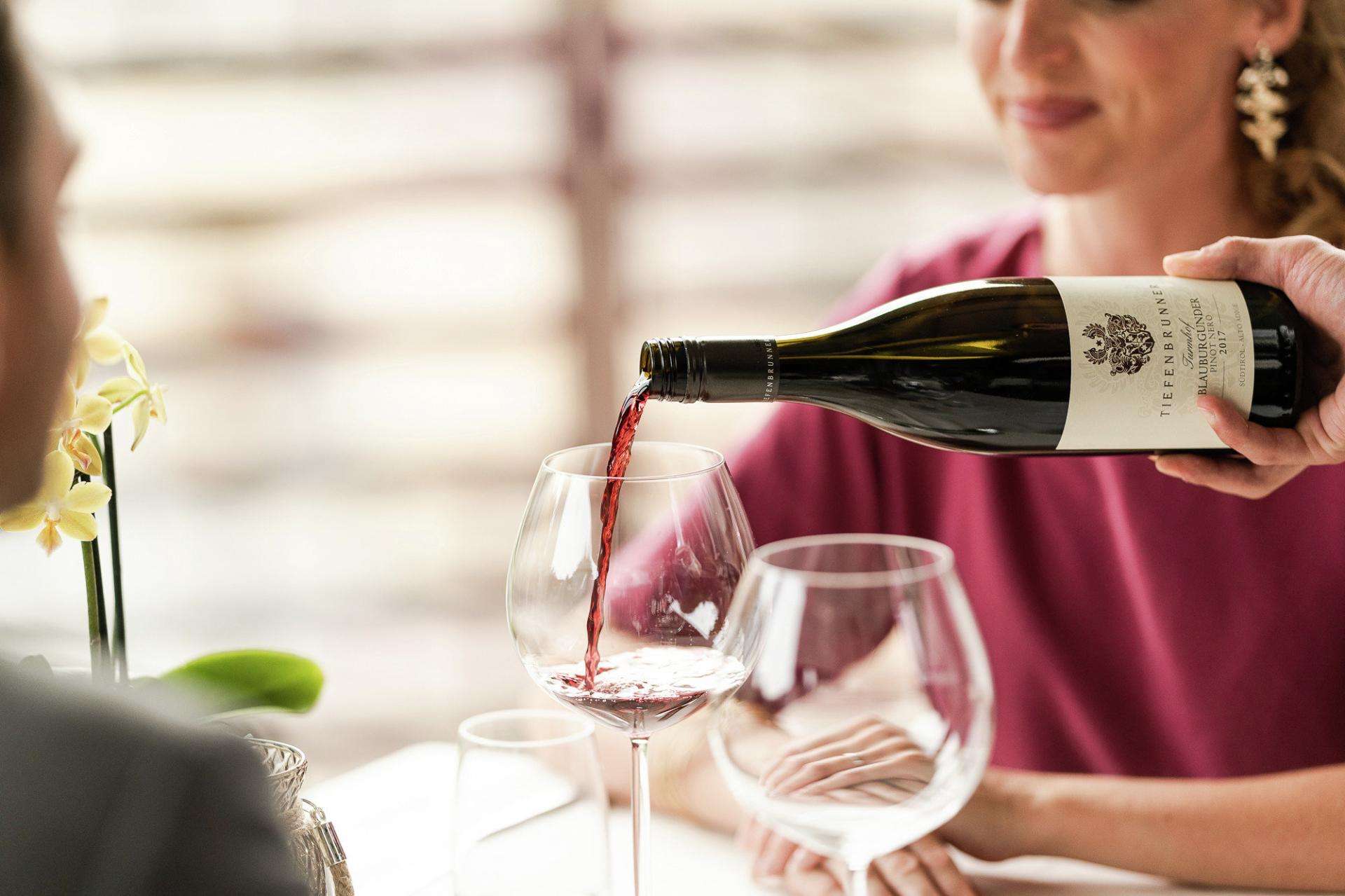 La camera doppia Pura (circa 28 m²) dispone di alte finestre con vista limitata sull'edificio adiacente. Questa camera doppia accogliente convince per il suo design moderno. Come in tutte le nostre moderne camere doppie, uno spazio confortevole invita a concedersi una pausa.