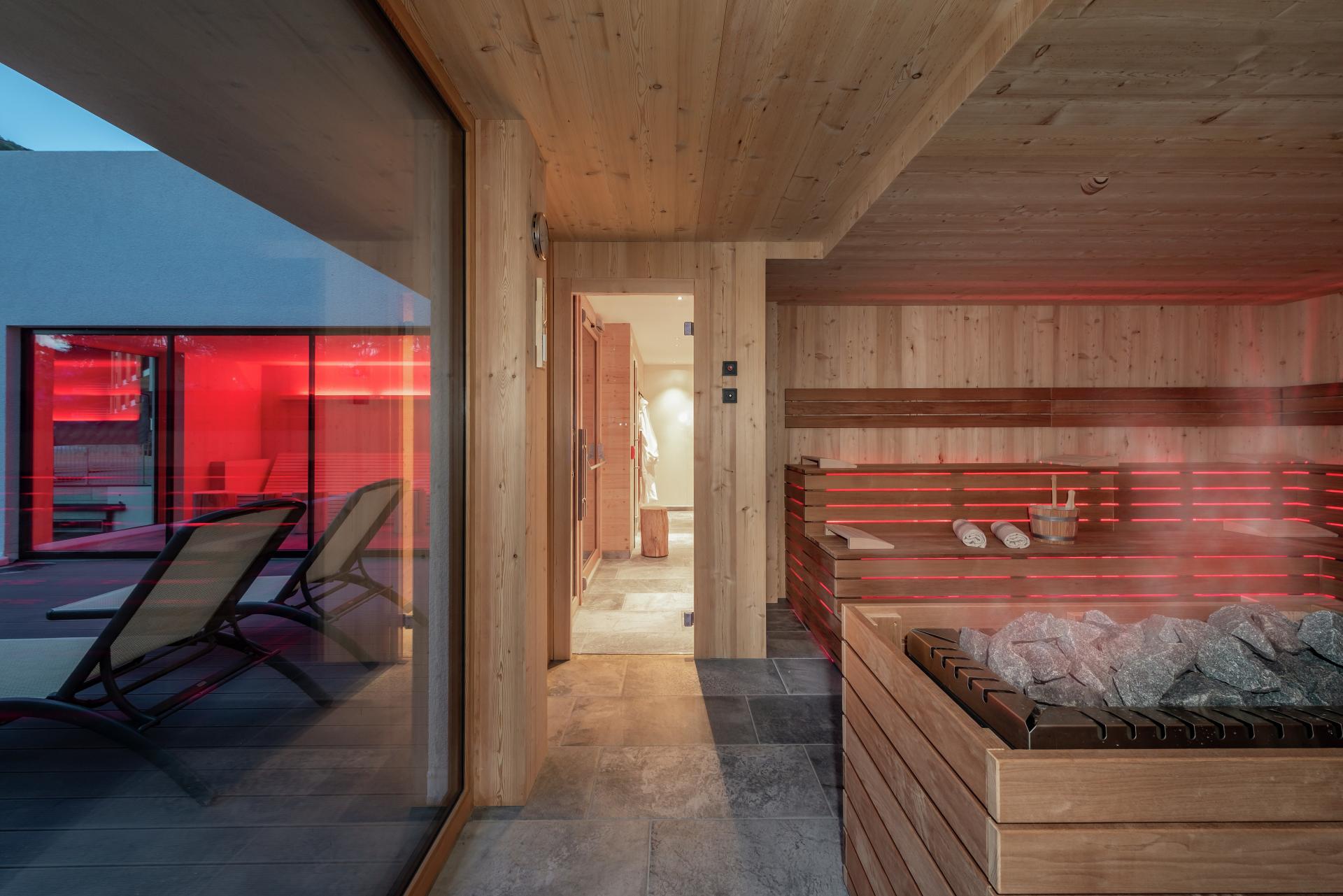 Camera famigliare per 2-5 persone, 35 m² con pavimento in legno, 1 camera con letto matrimoniale, 1 soggiorno/camera per bambini con 2 letti singoli (utilizzabili anche come divano), angolo seduta, frigorifero, 1 bagno con doccia, WC & bidet, fon, accappatoio, telefono, safe, 2x Sat-TV, W-Lan