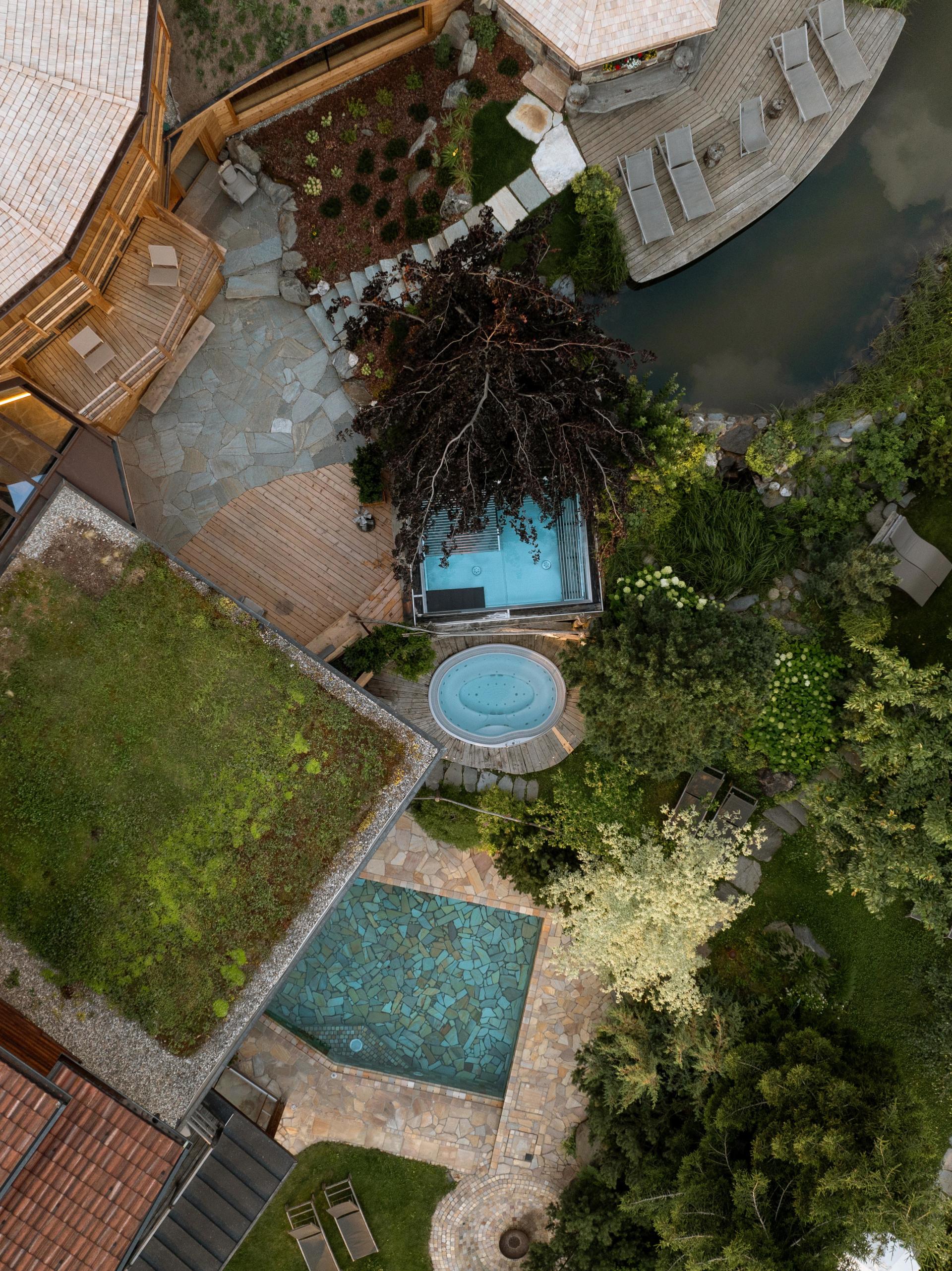- Le casette dei bagni alpini Quarzit e Terra nicchie accoglienti nelle nostre sale relax, nel giardino e lungo il sentiero della consapevolezza